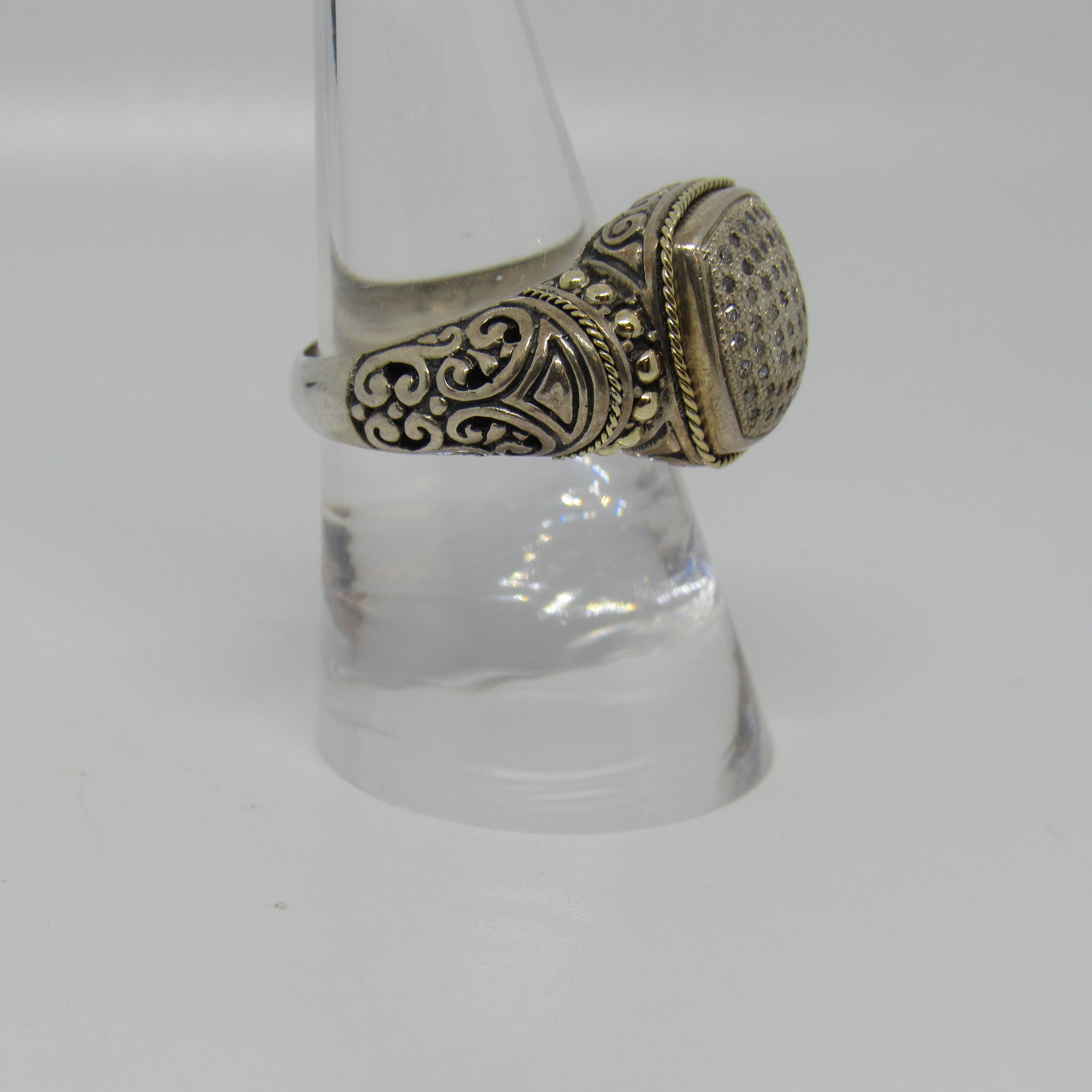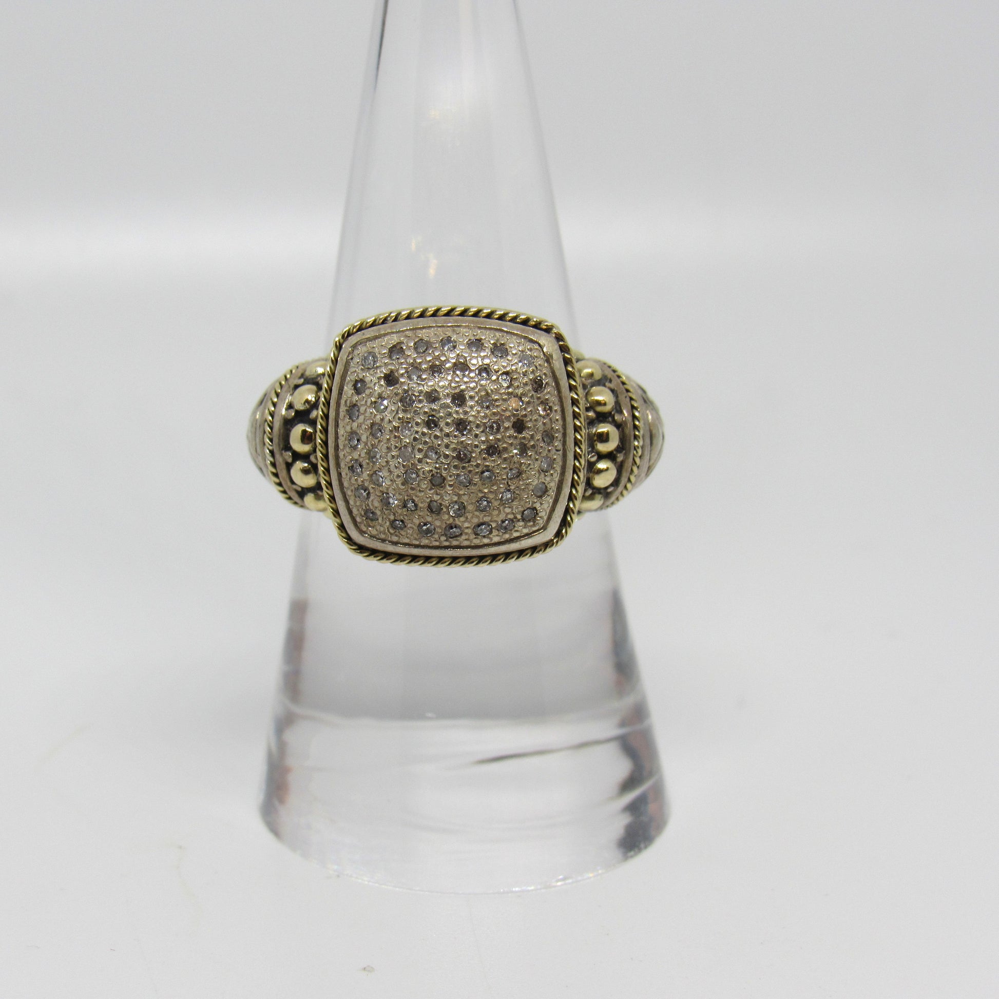 Samuel Benham Sterling Silver Diamond Chip Ring with 18K Yellow Gold Accents - Sz 7.5