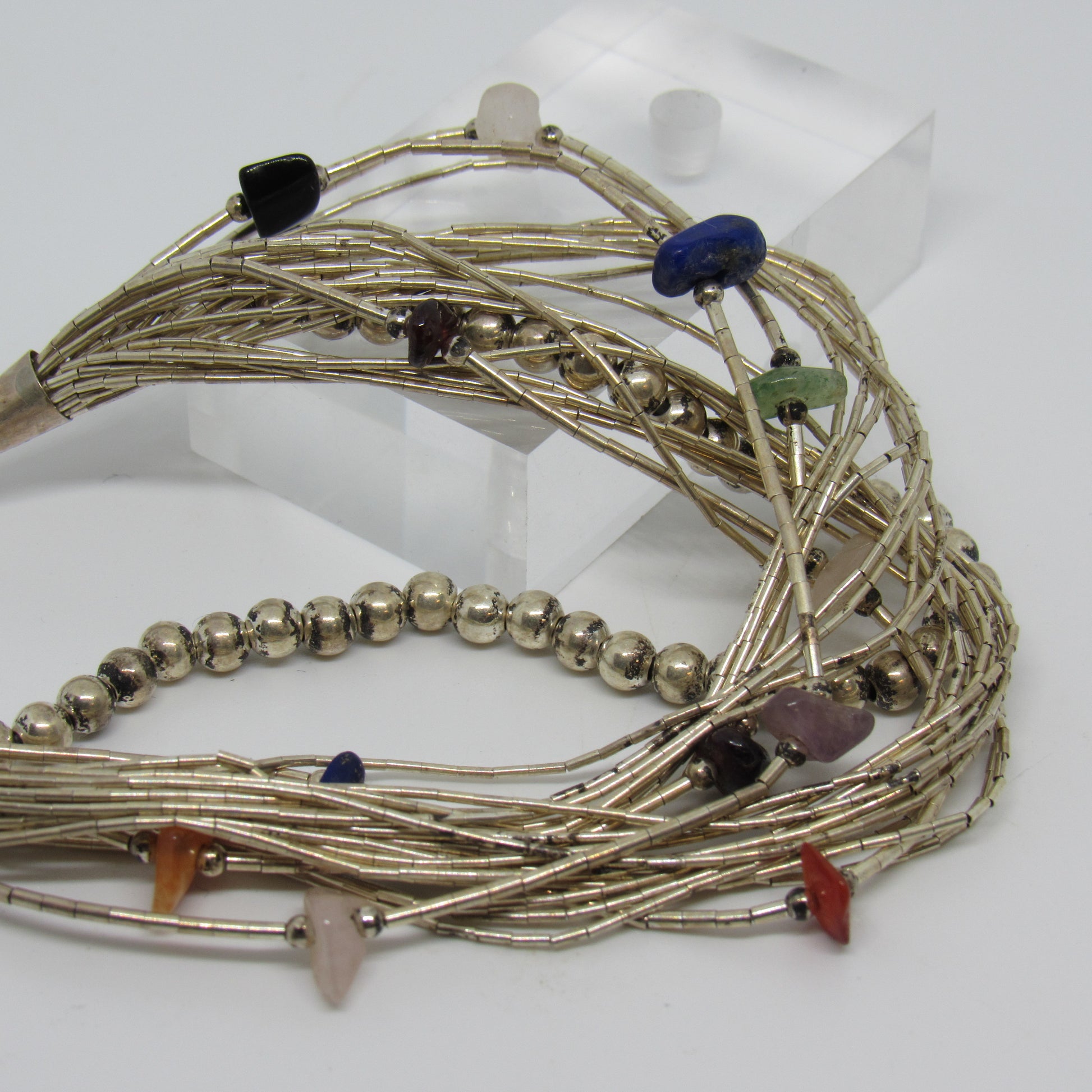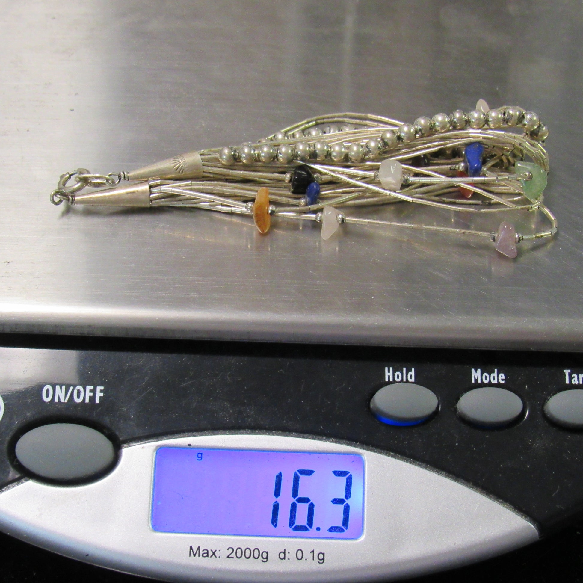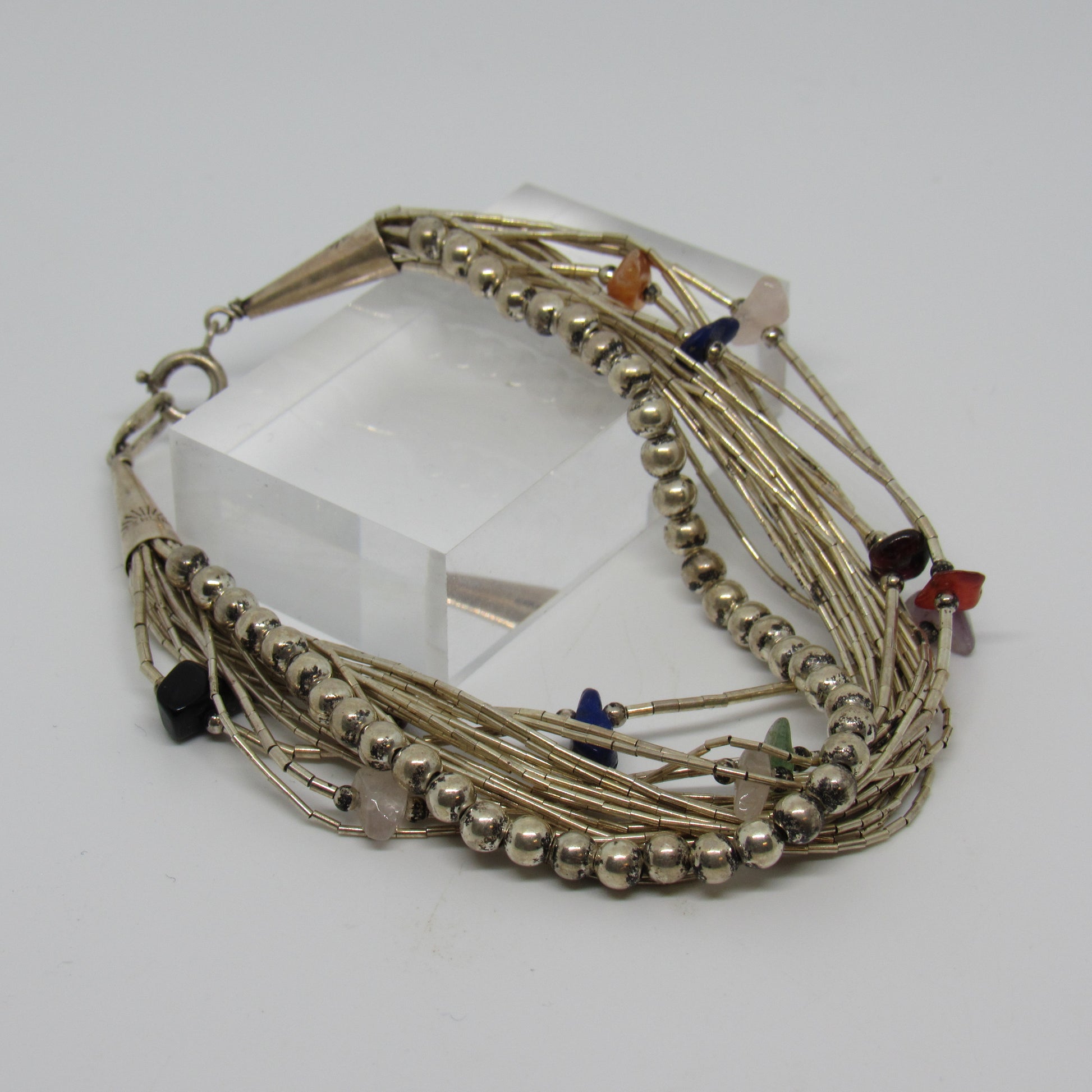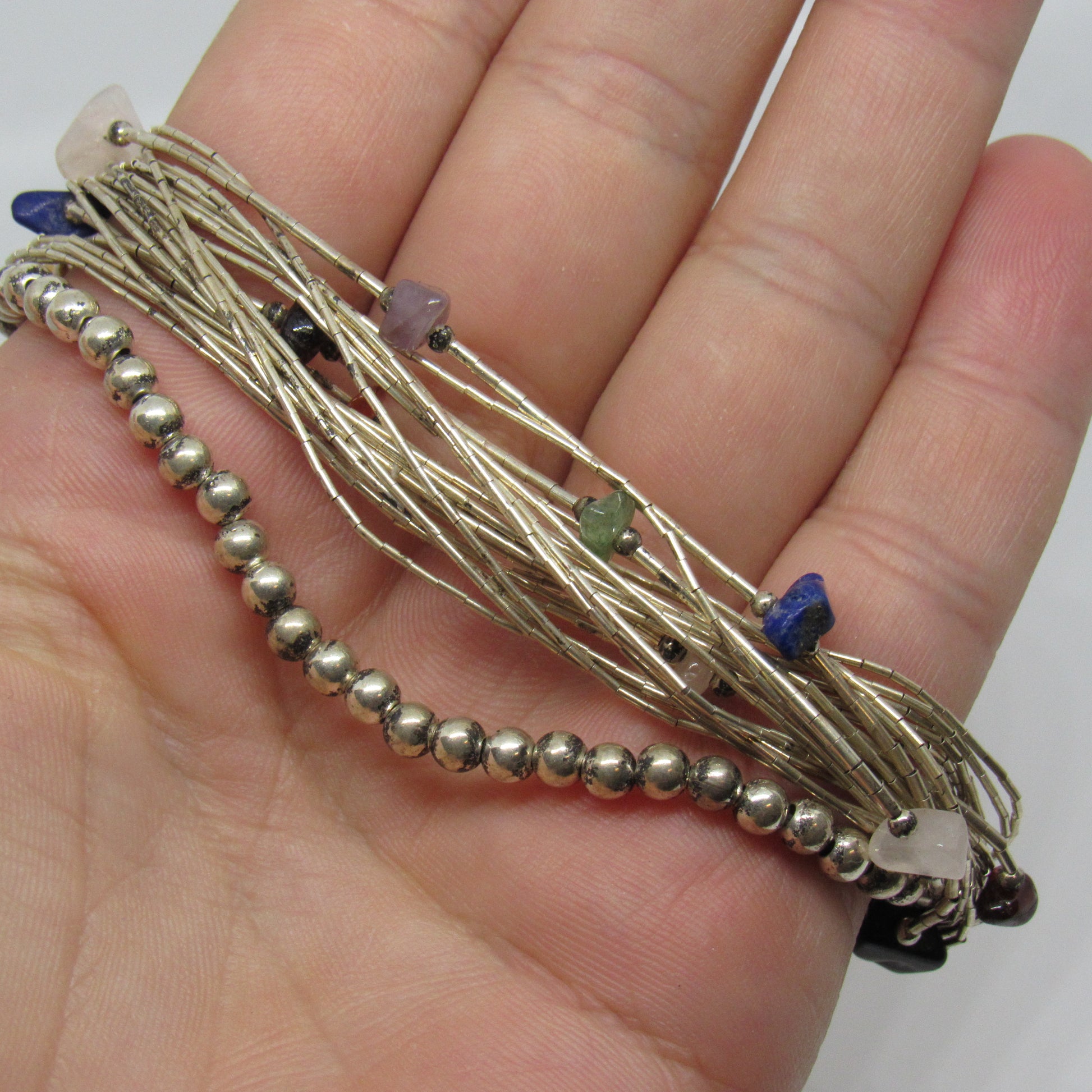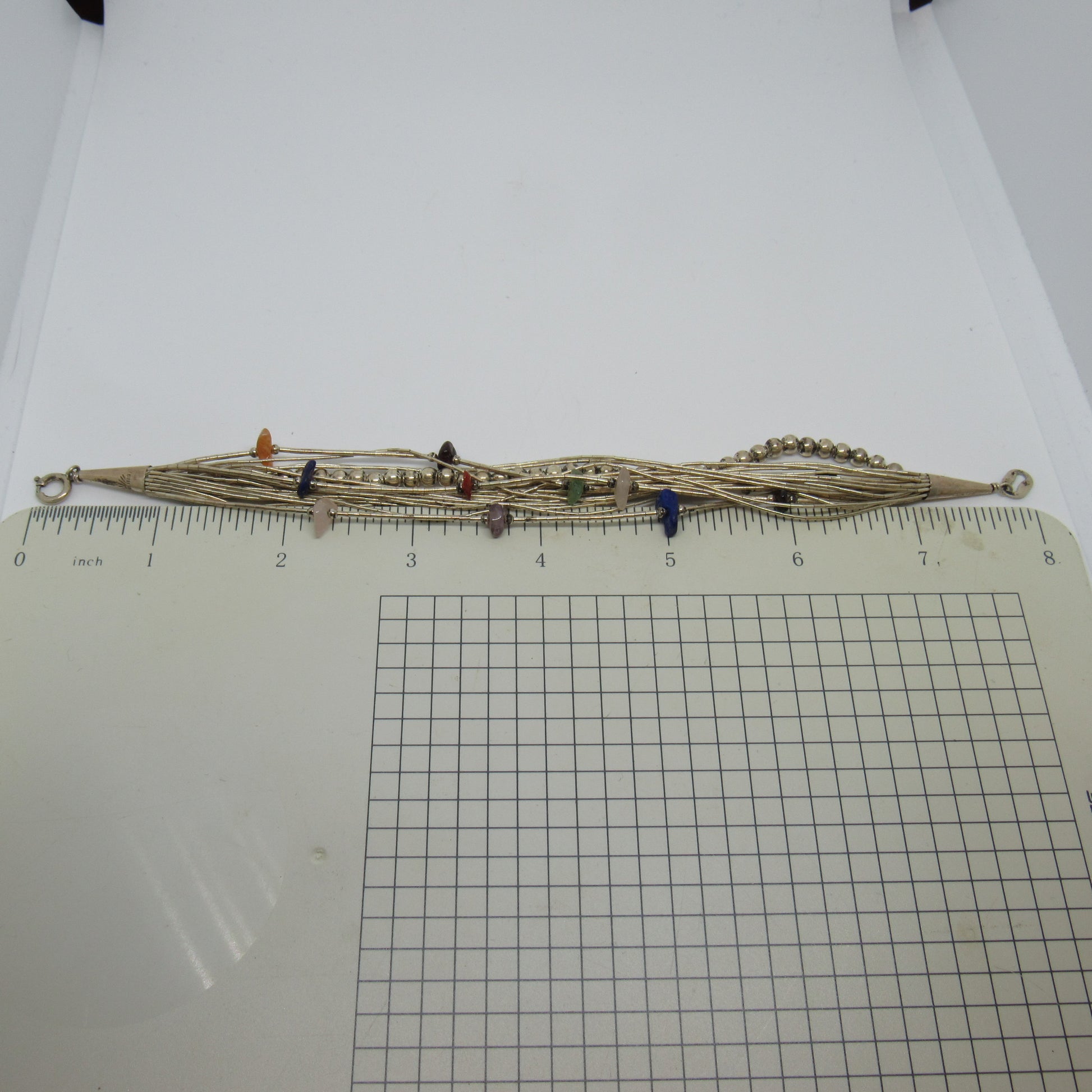 Sterling Silver Liquid Silver Bracelet w/ Beads & Stones - 8 inch