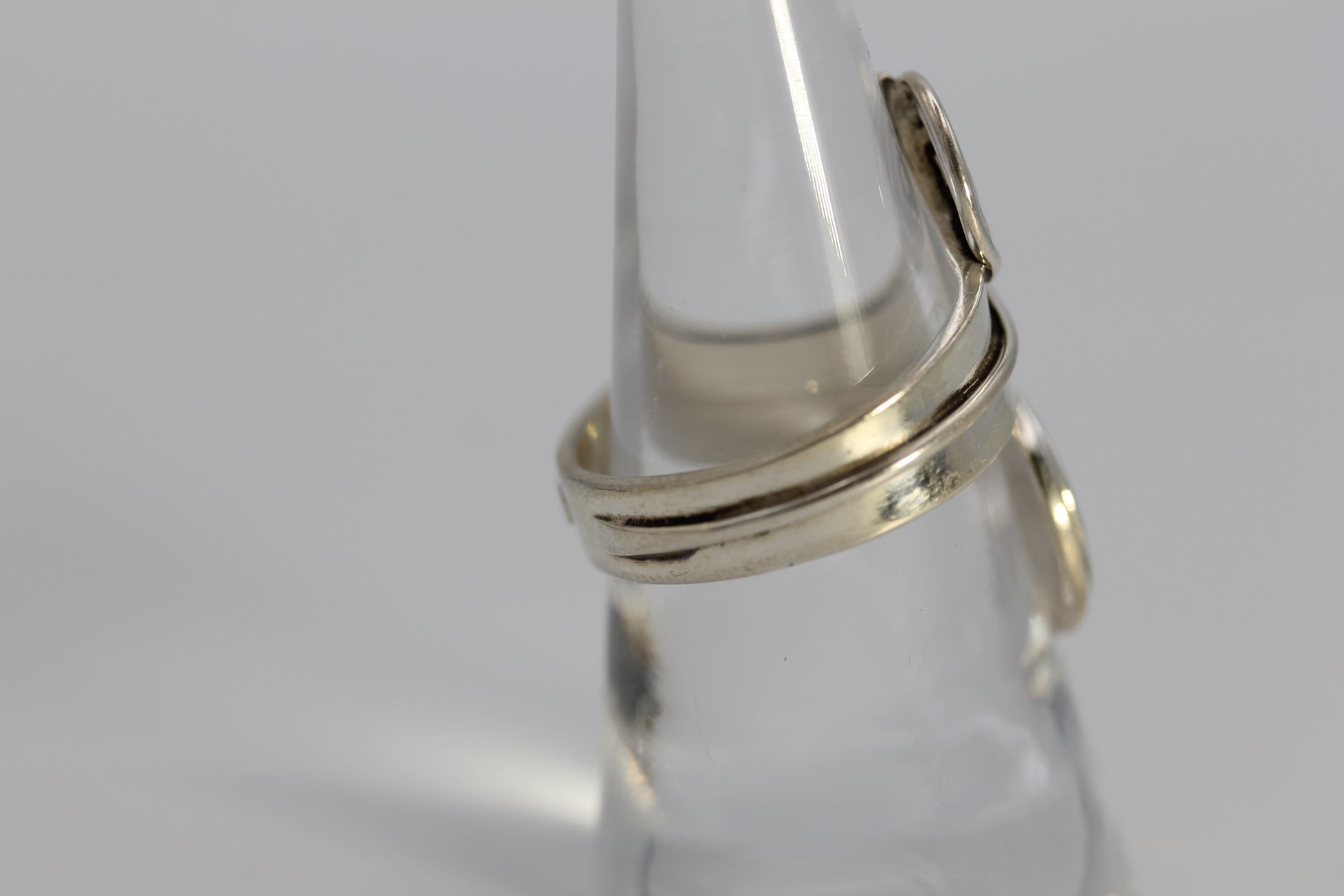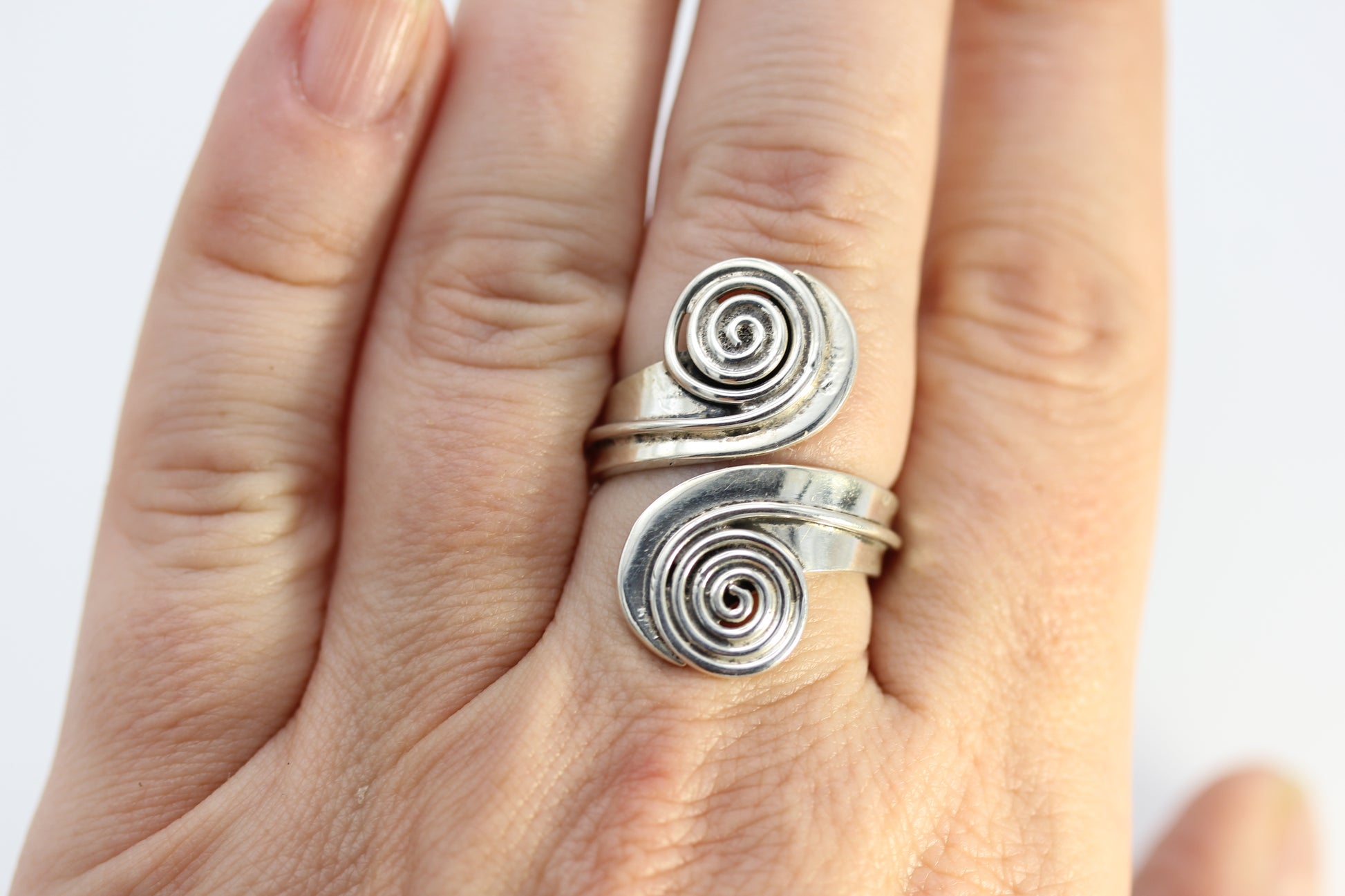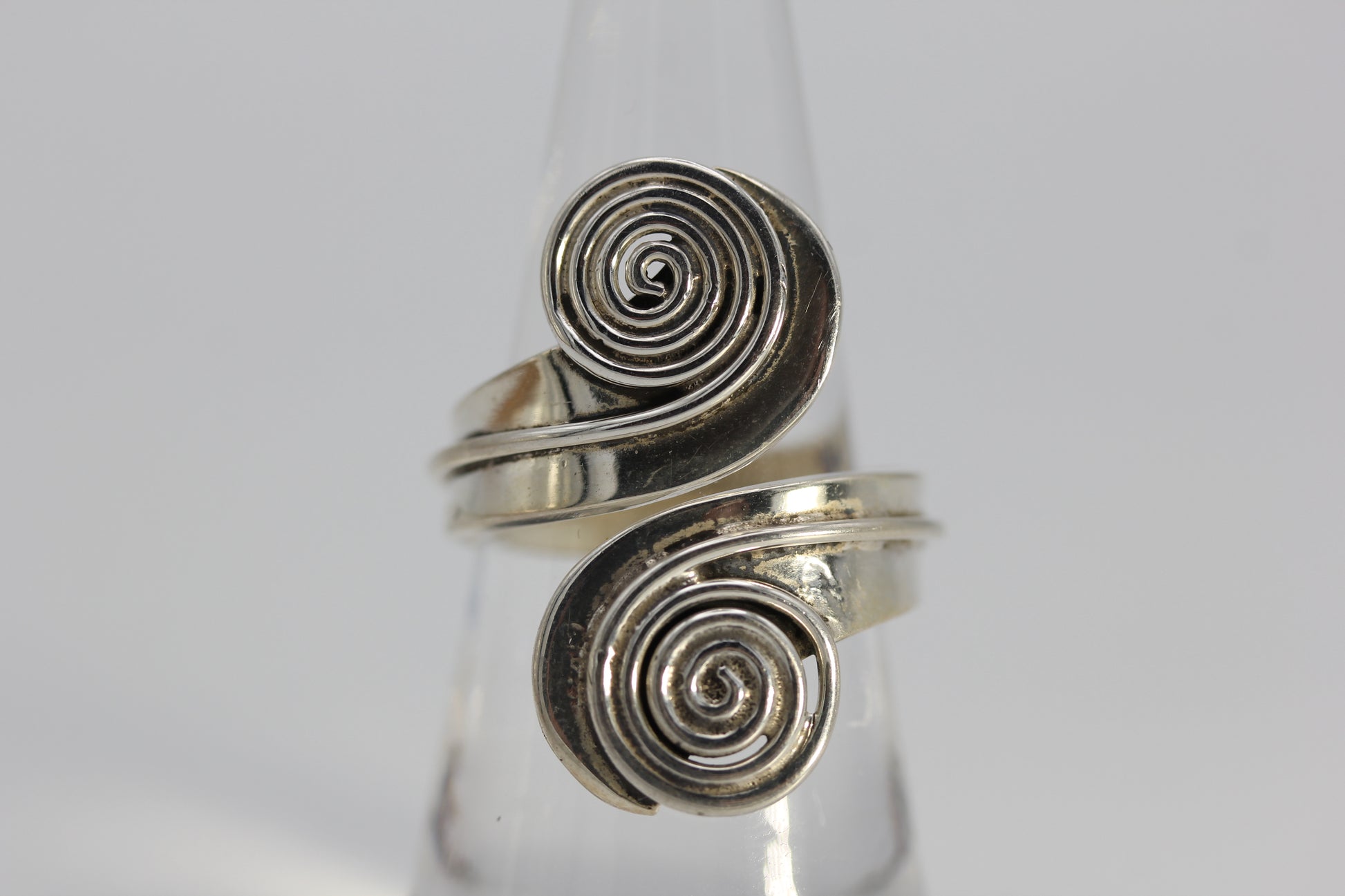 Taxco Mexico TC-208 Sterling Silver 925 Swirl Circle Bypass Wrap Ring - 8.9 g Size ~8