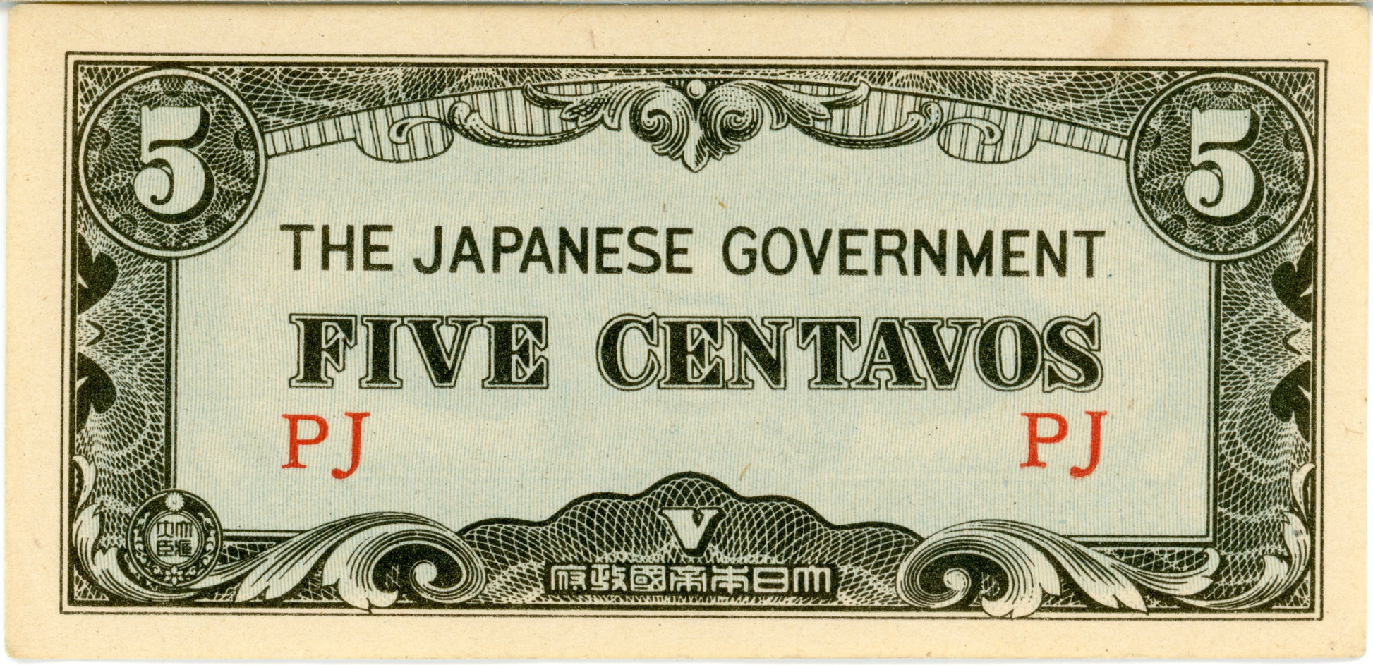 The Japanese Government One 5 Centavo PJ WWII Philippines Occupation Note