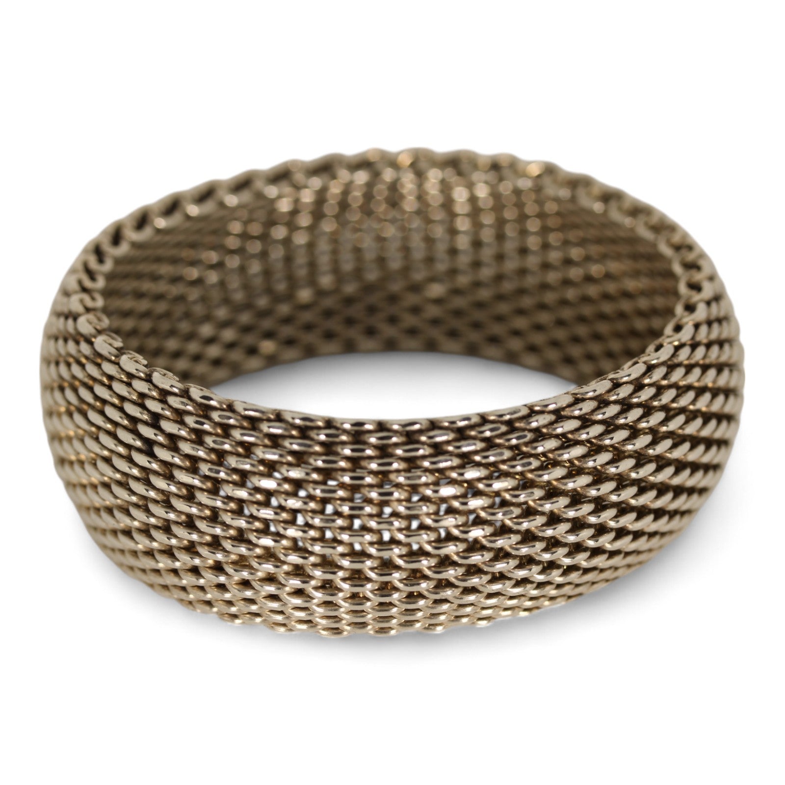 Tiffany & Co. Somerset Sterling Silver Flexible Wide Mesh Bangle Bracelet - 26mm ~8"
