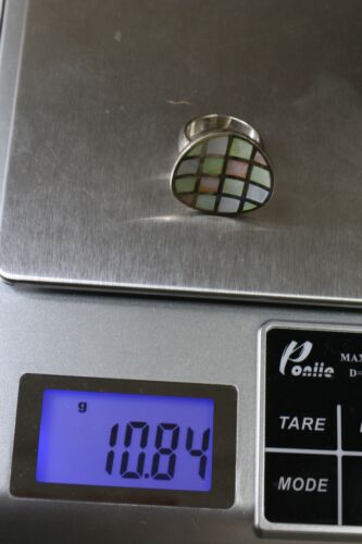 Unique Sterling Silver 925 Round Mother of Pearl Inlay Curved Ring - Sz 5.75