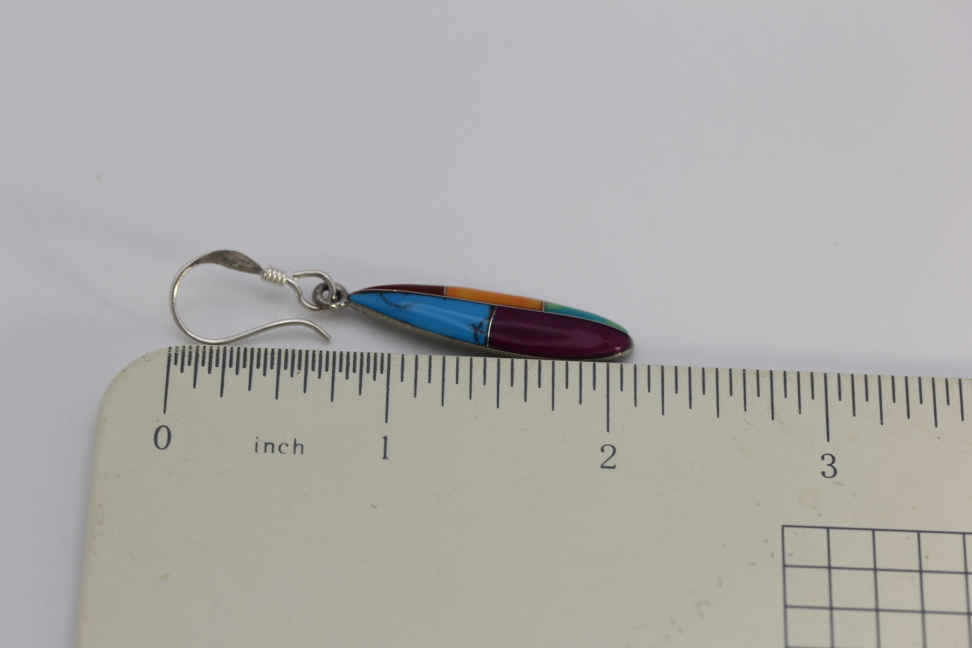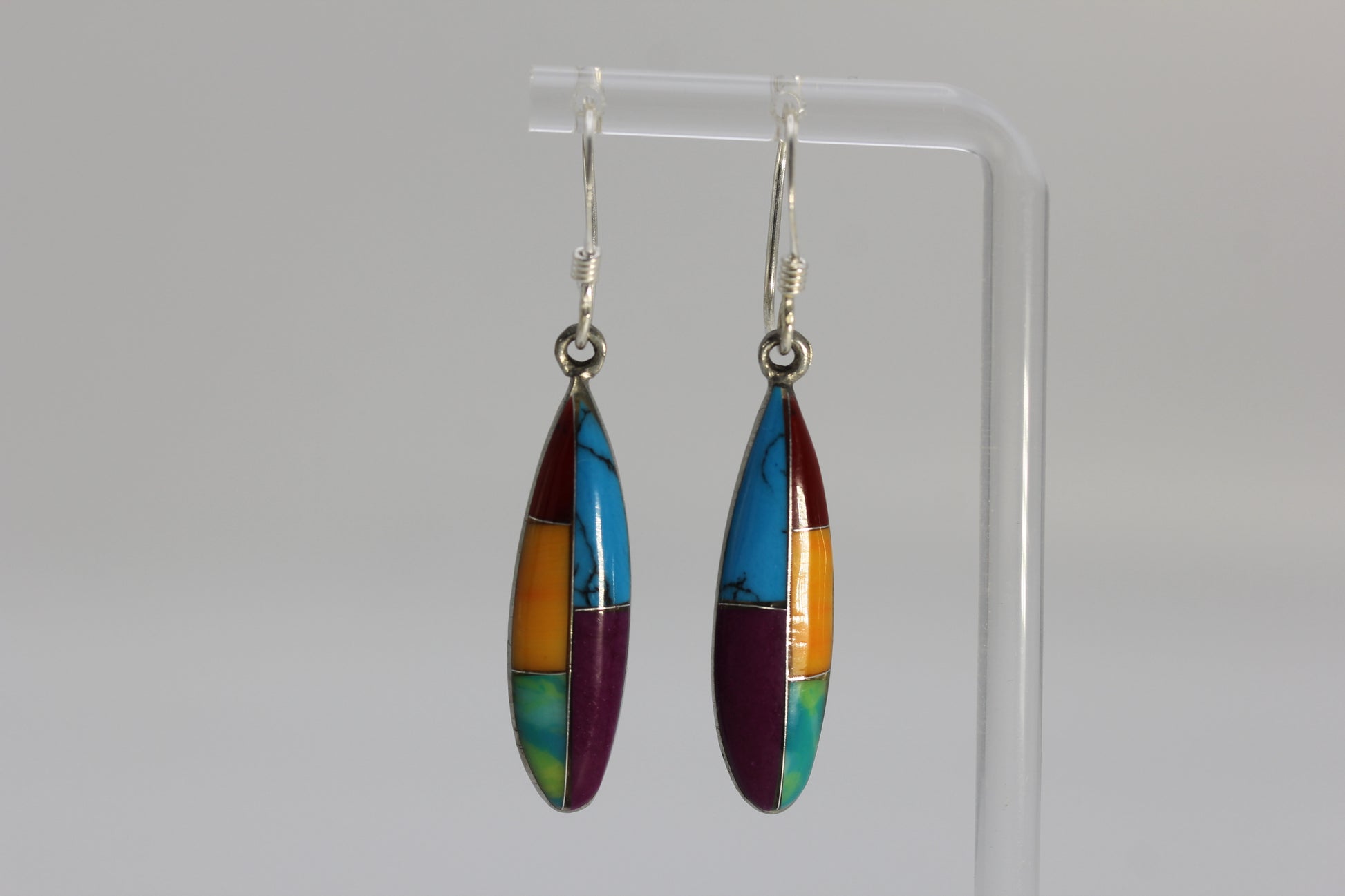 Vermont USA Mexico Hand-Made Multicolored Multi Stone Inlay Dangle Earrings 4.5 g