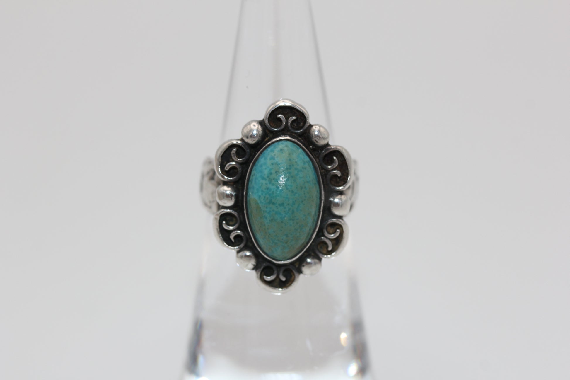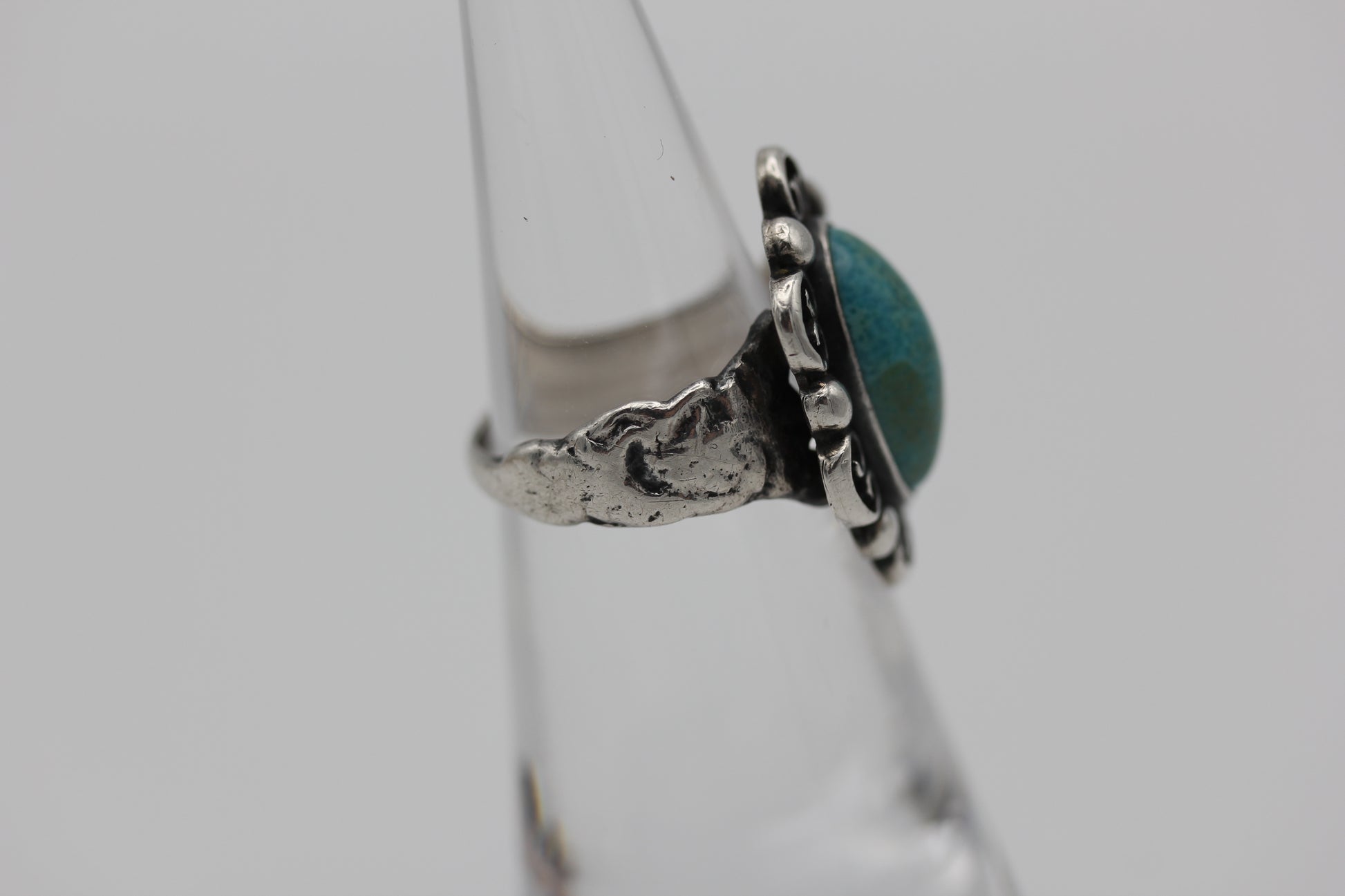 Vintage Abraham Tobias Sterling Silver Mexico Turquoise Ring - Sz 4.25