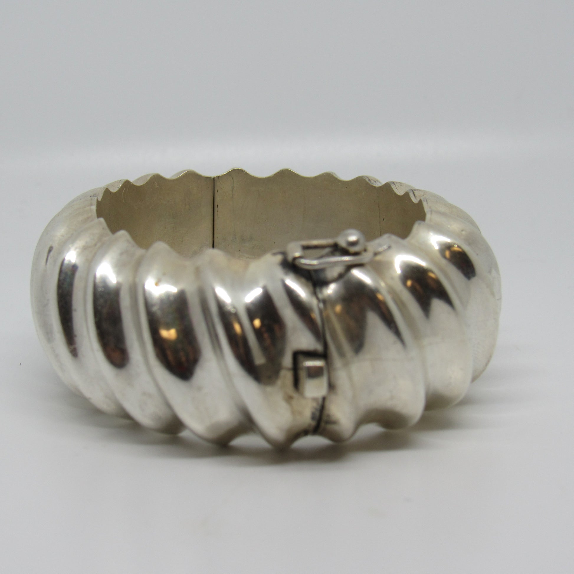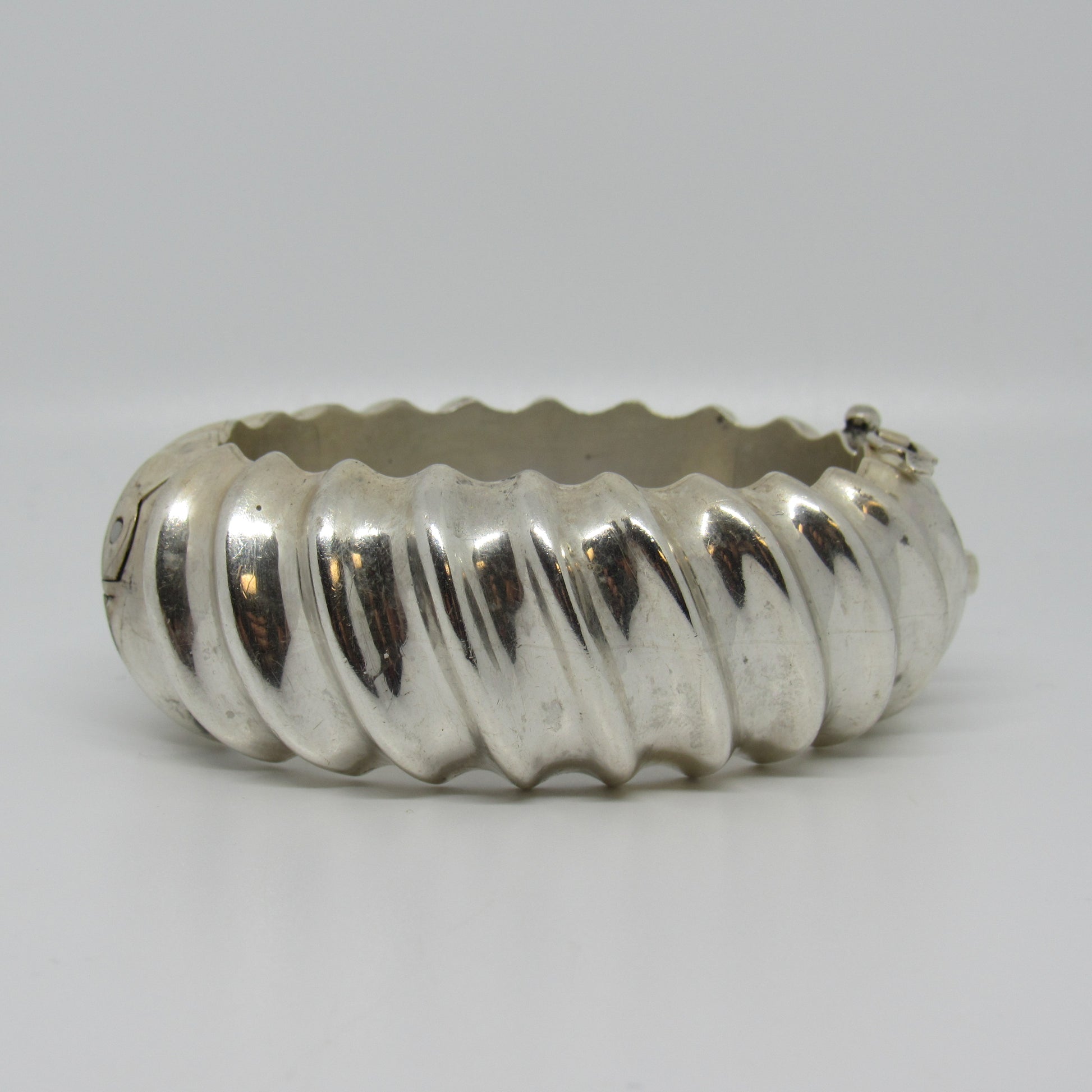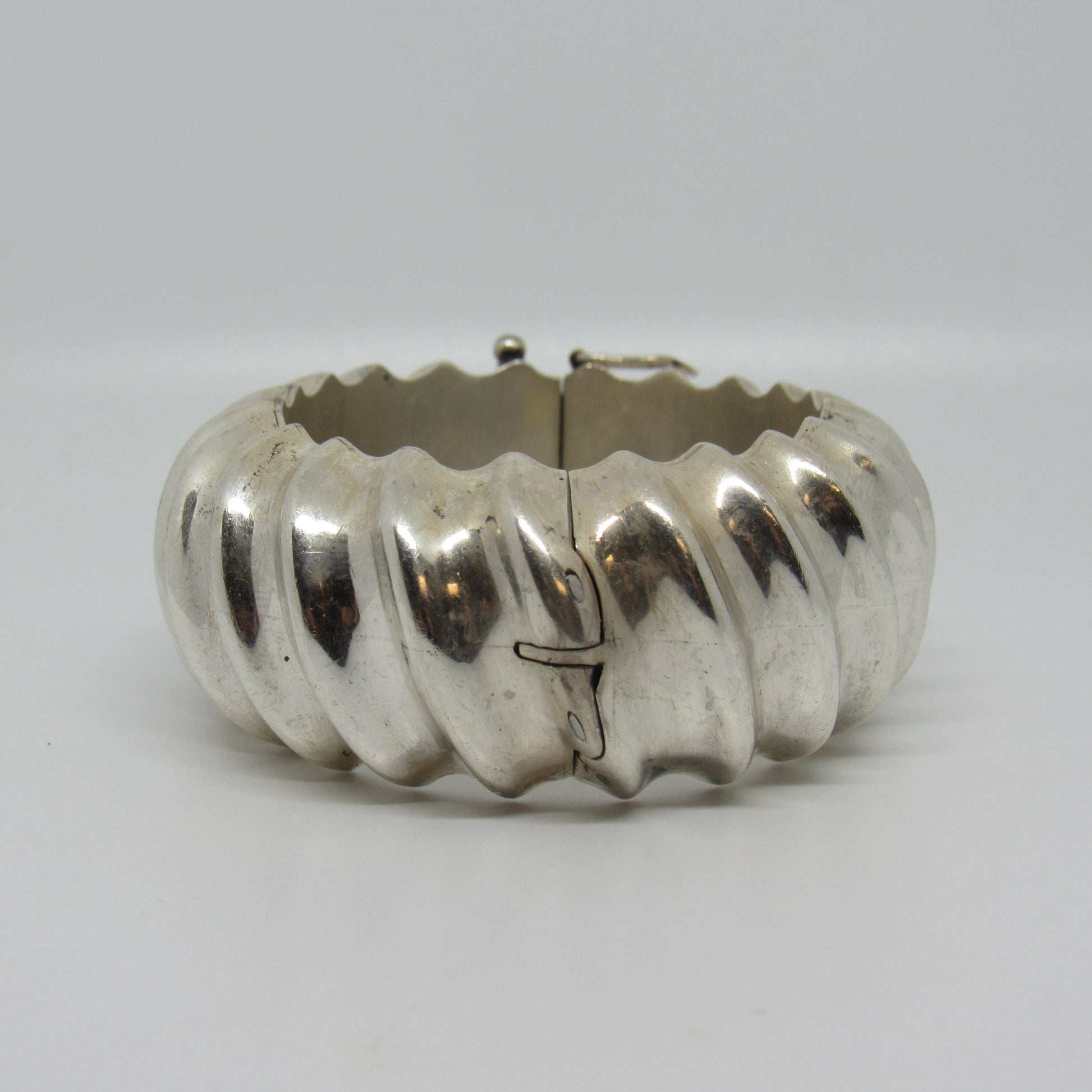 Vintage Bayanihan Sterling Silver Modernist Heavy Chunky Bangle Hinged Bracelet