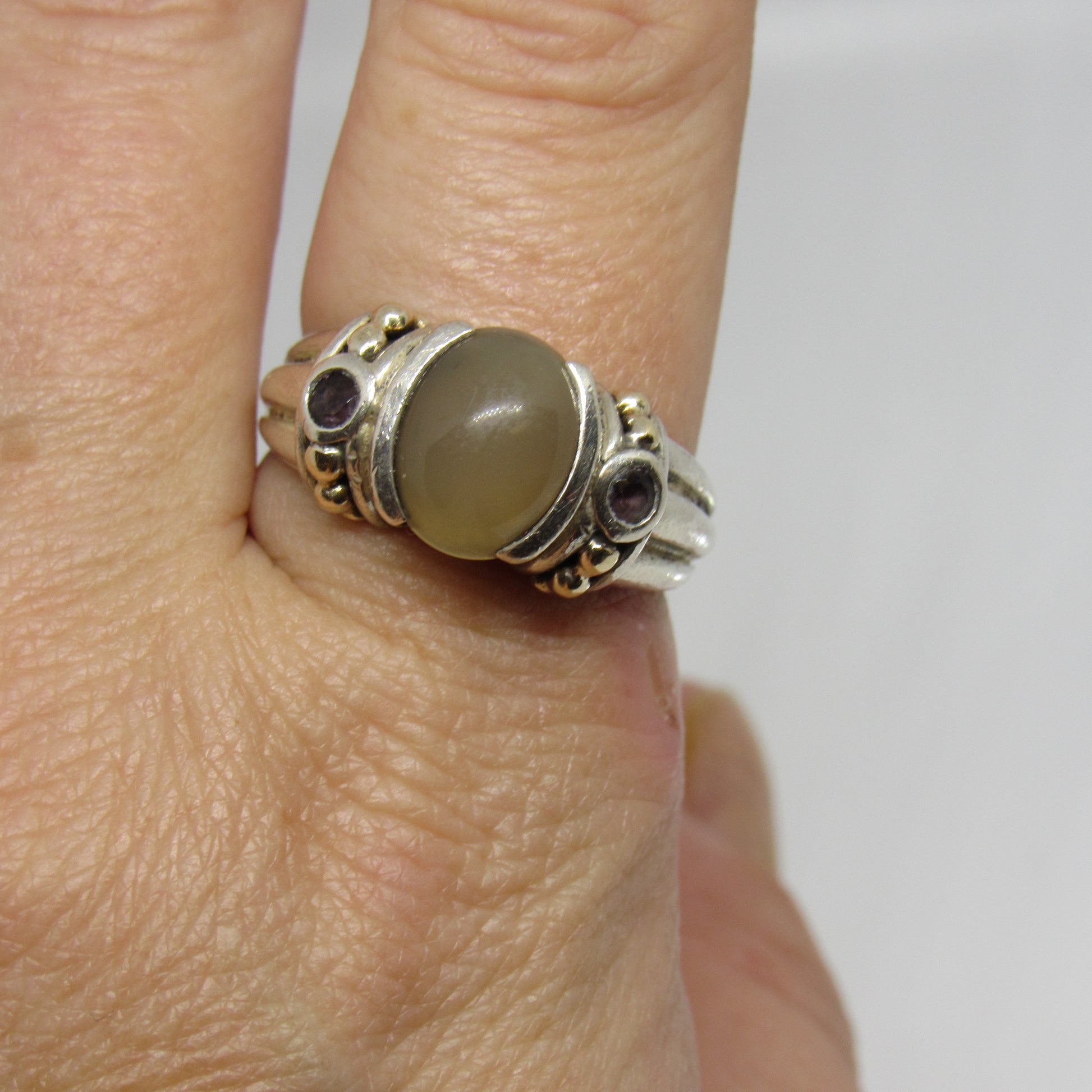 Vintage BJC Samuel B Benham 14k Gold & Sterling Silver Chalcedony Amethyst Ring - Sz 10
