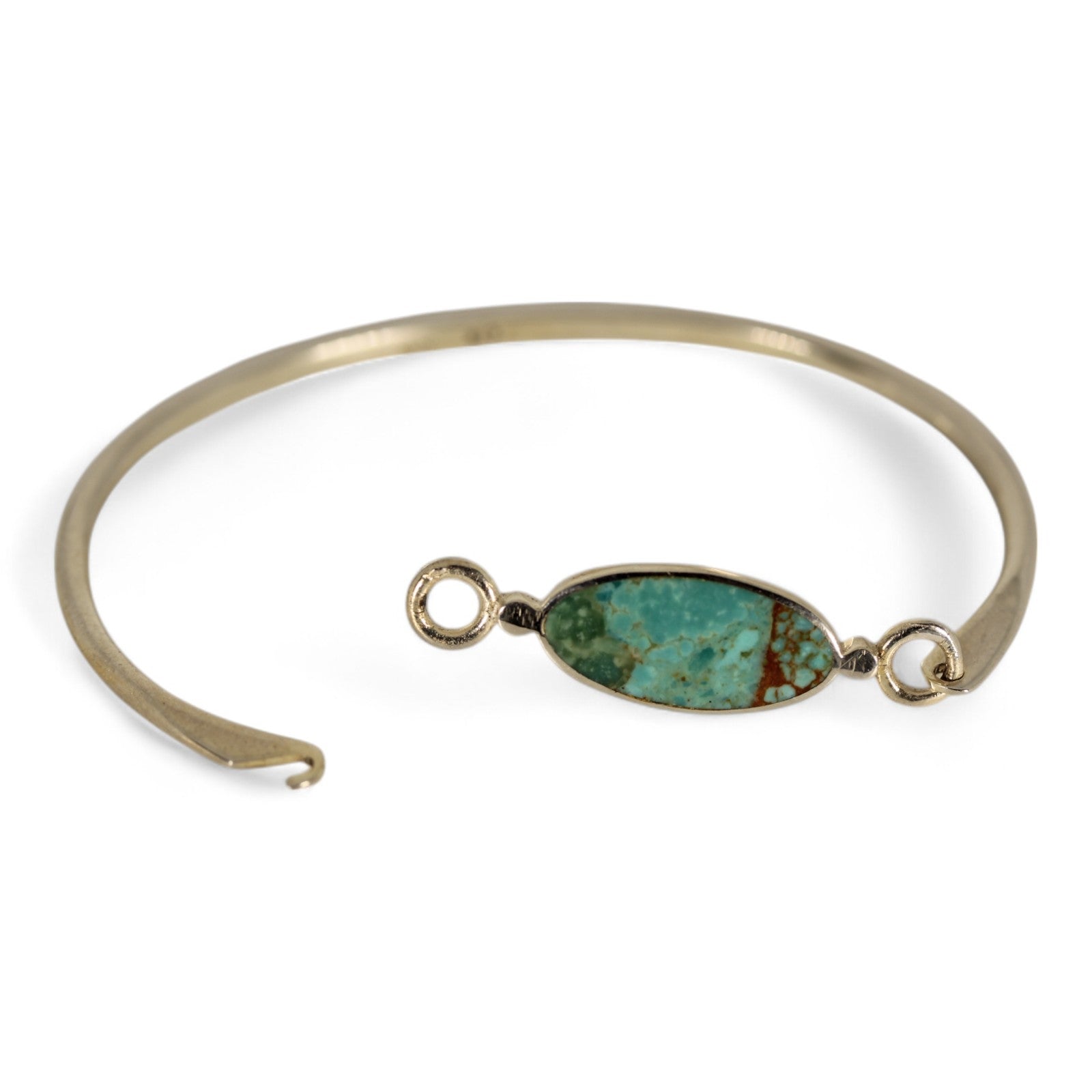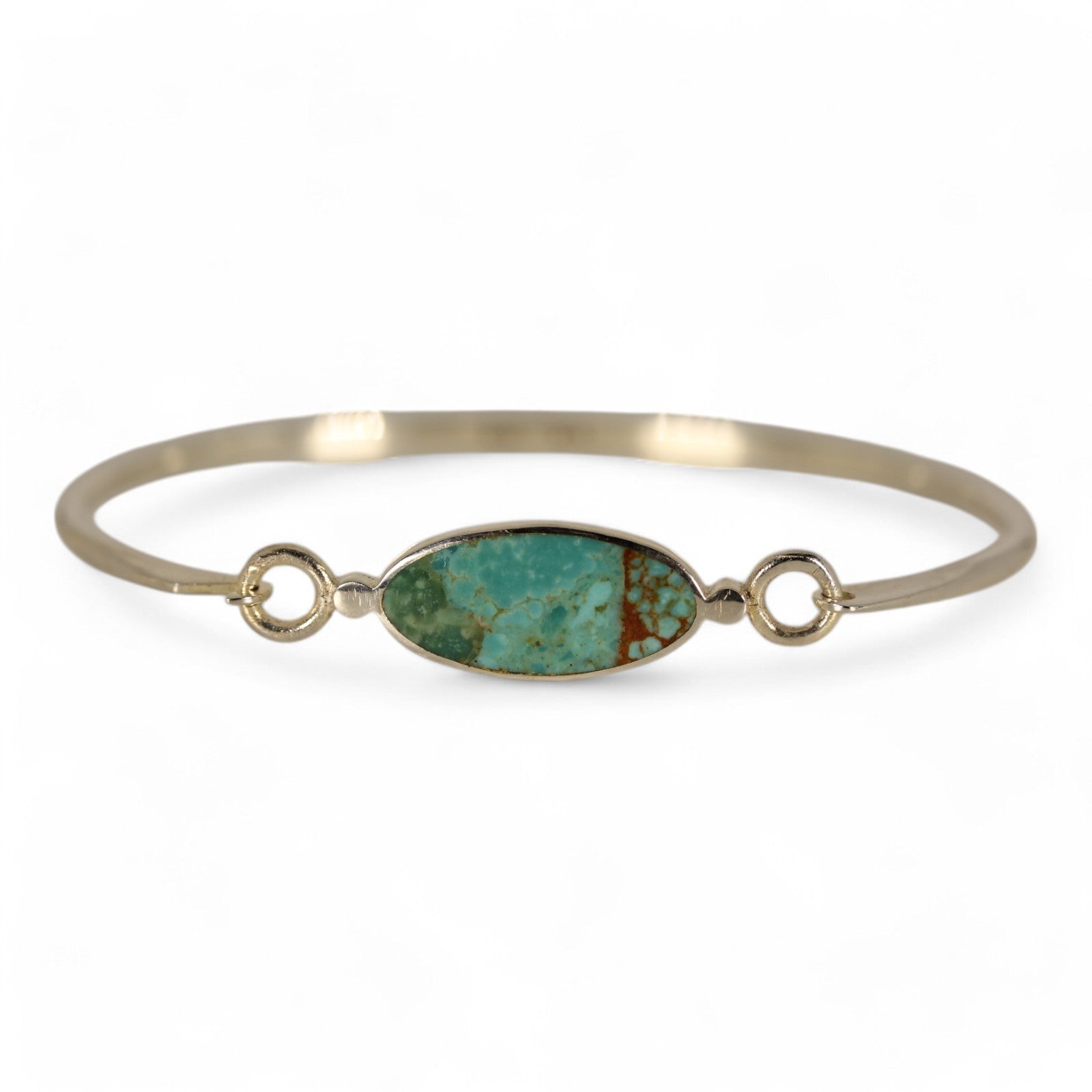 Vintage BOMA Southwestern Sterling Silver Turquoise Bangle BRACELET Hook - ~6 inch