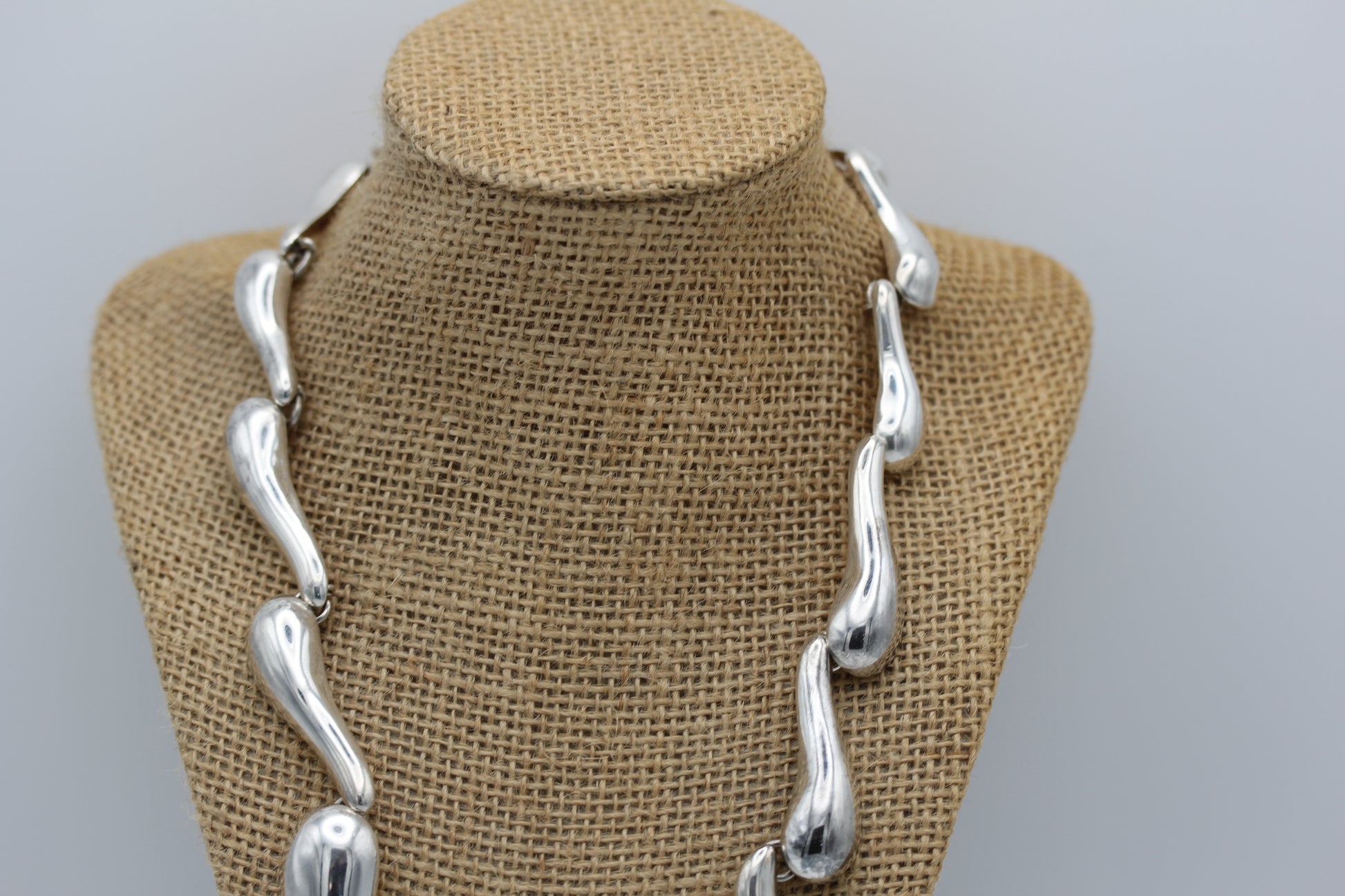 Vintage CII Mexico 925 Sterling Silver Modernist Graduated Domed Necklace - ~20 inch