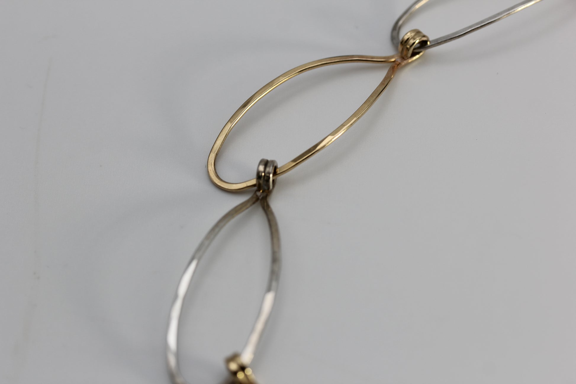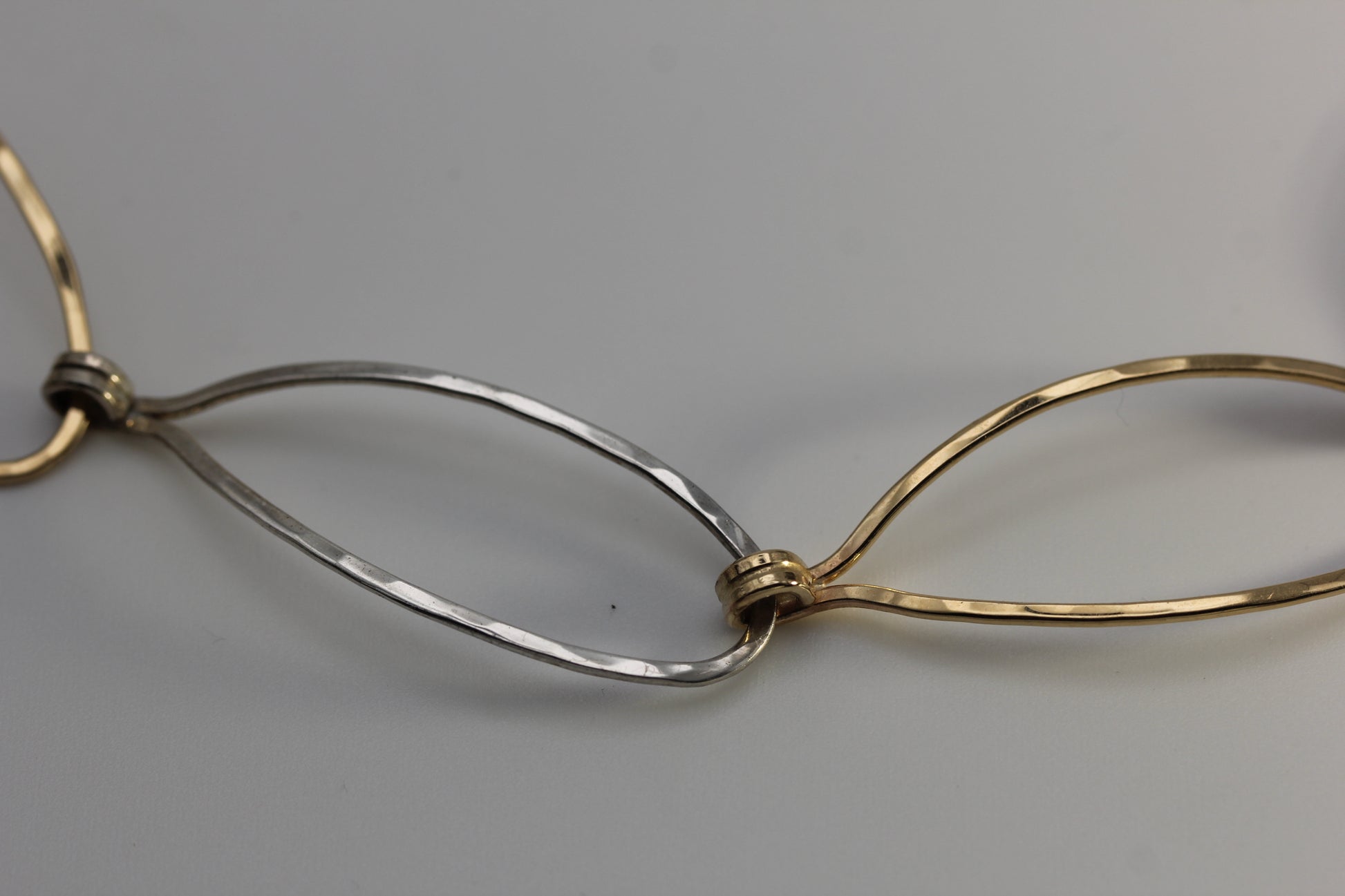 Vintage Ed Levin 14k Yellow Gold & Sterling Silver 925 Oval Link Necklace 18 inch 19.6 gr