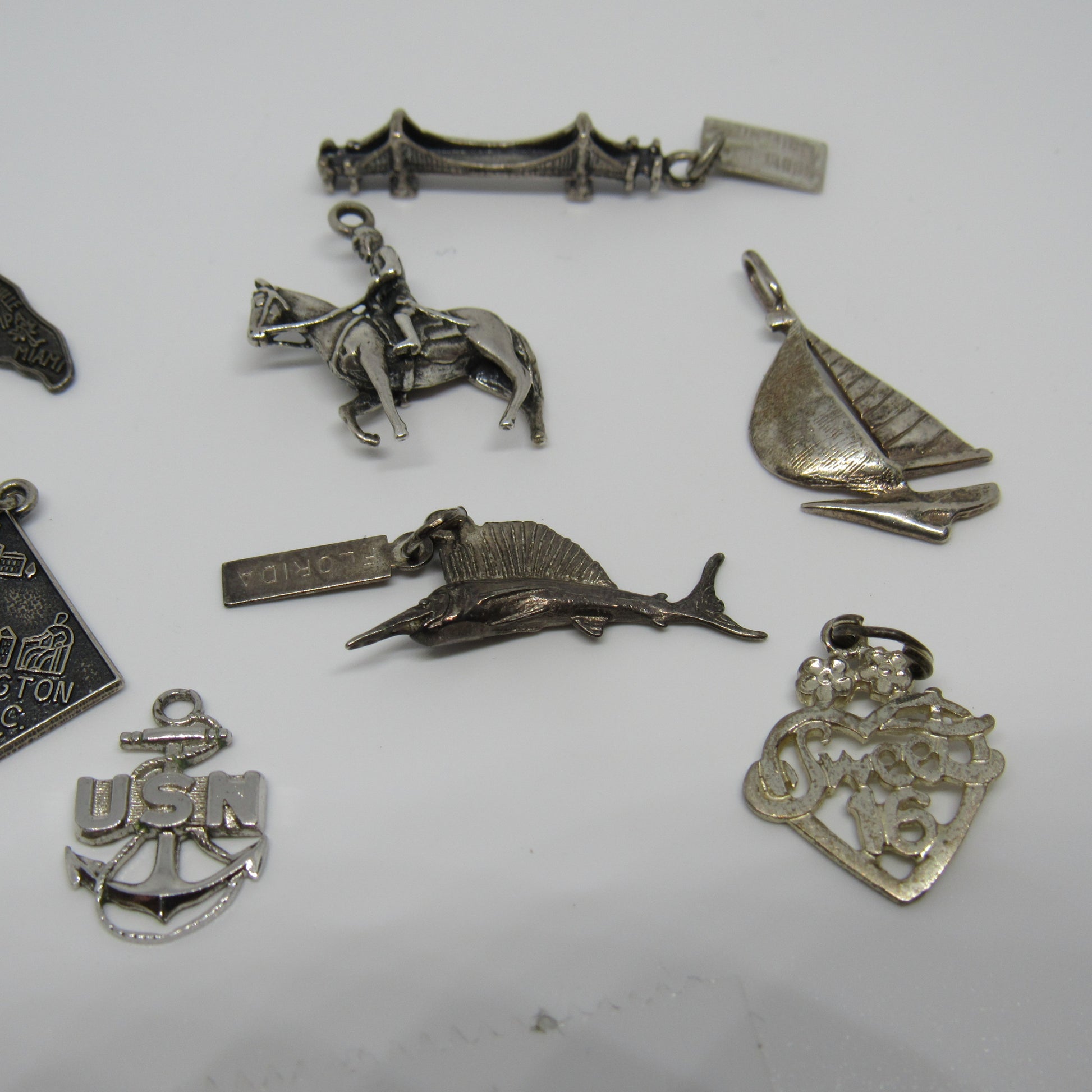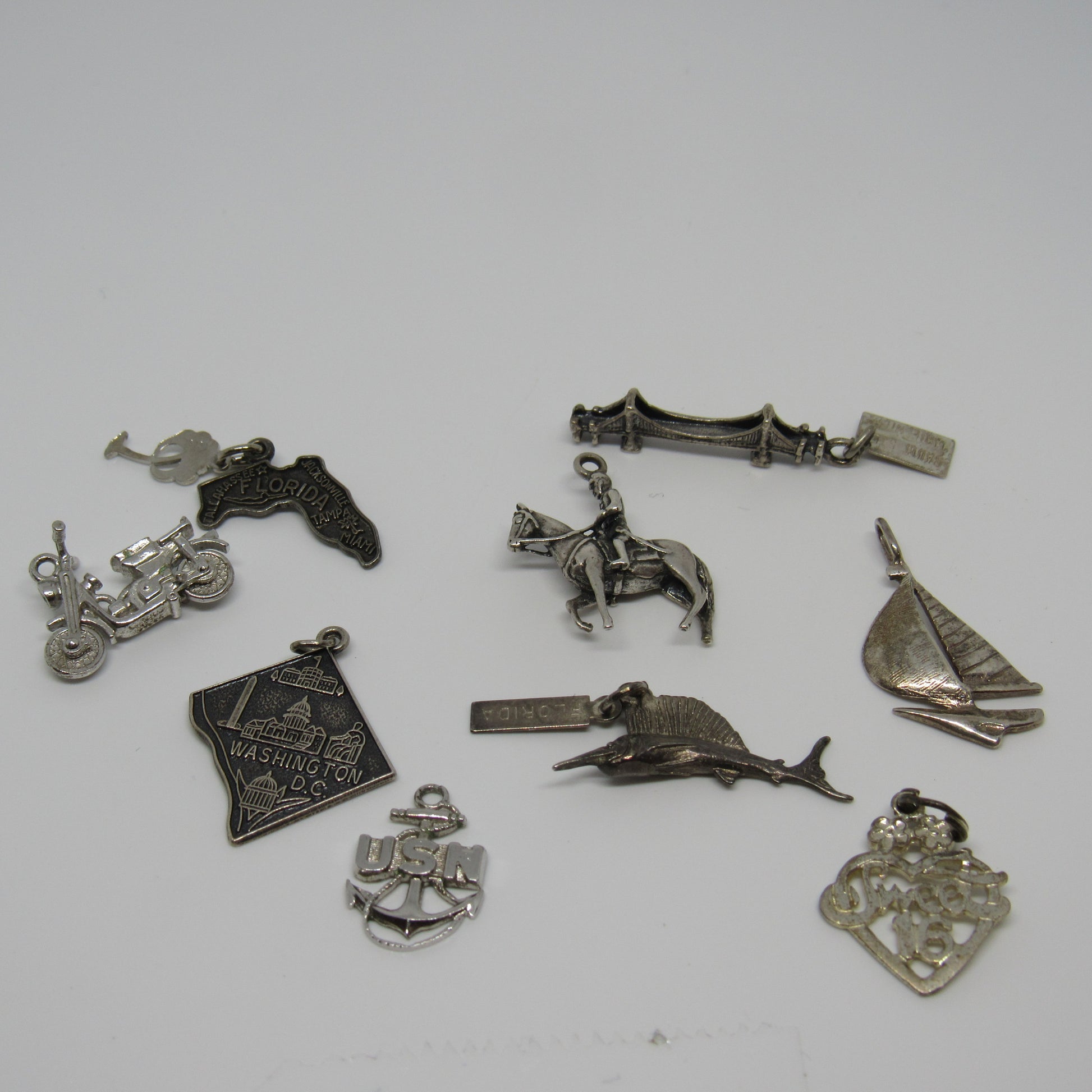 Vintage Lot of Sterling 925 Silver Sail Boat USN Sweet16 Motorcycle Charm Pendant Bracelet