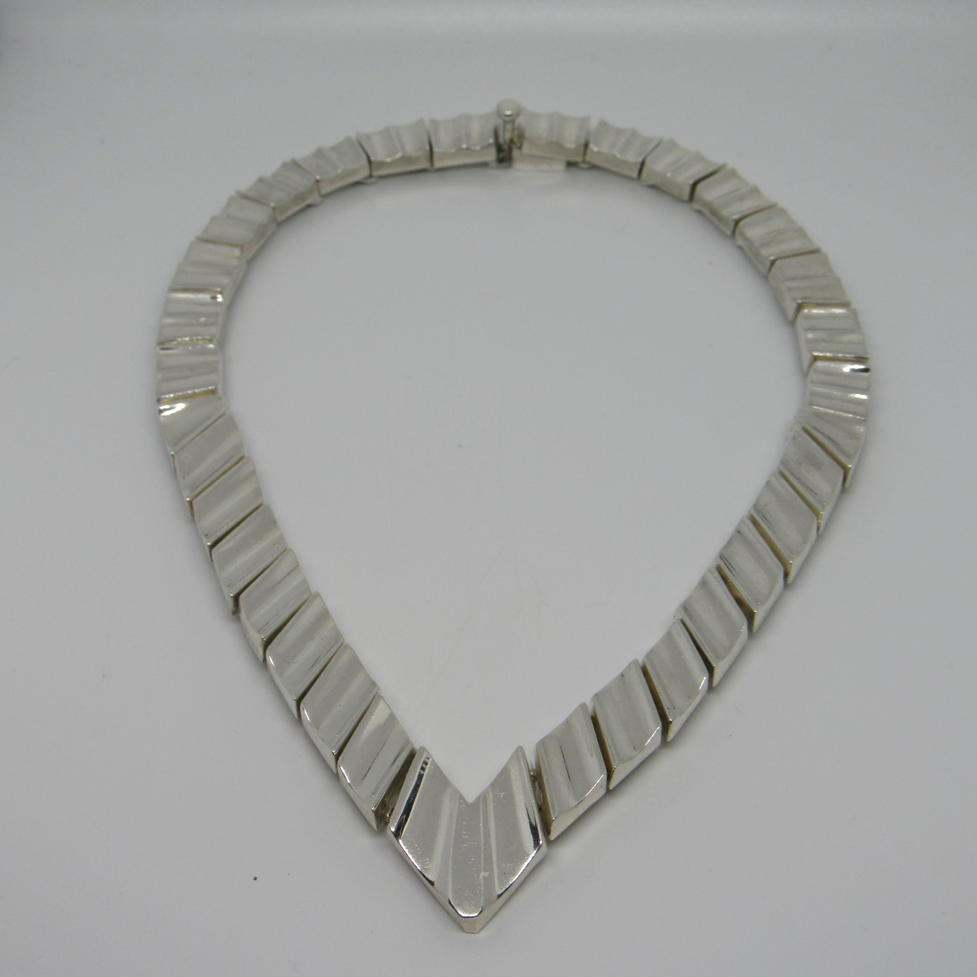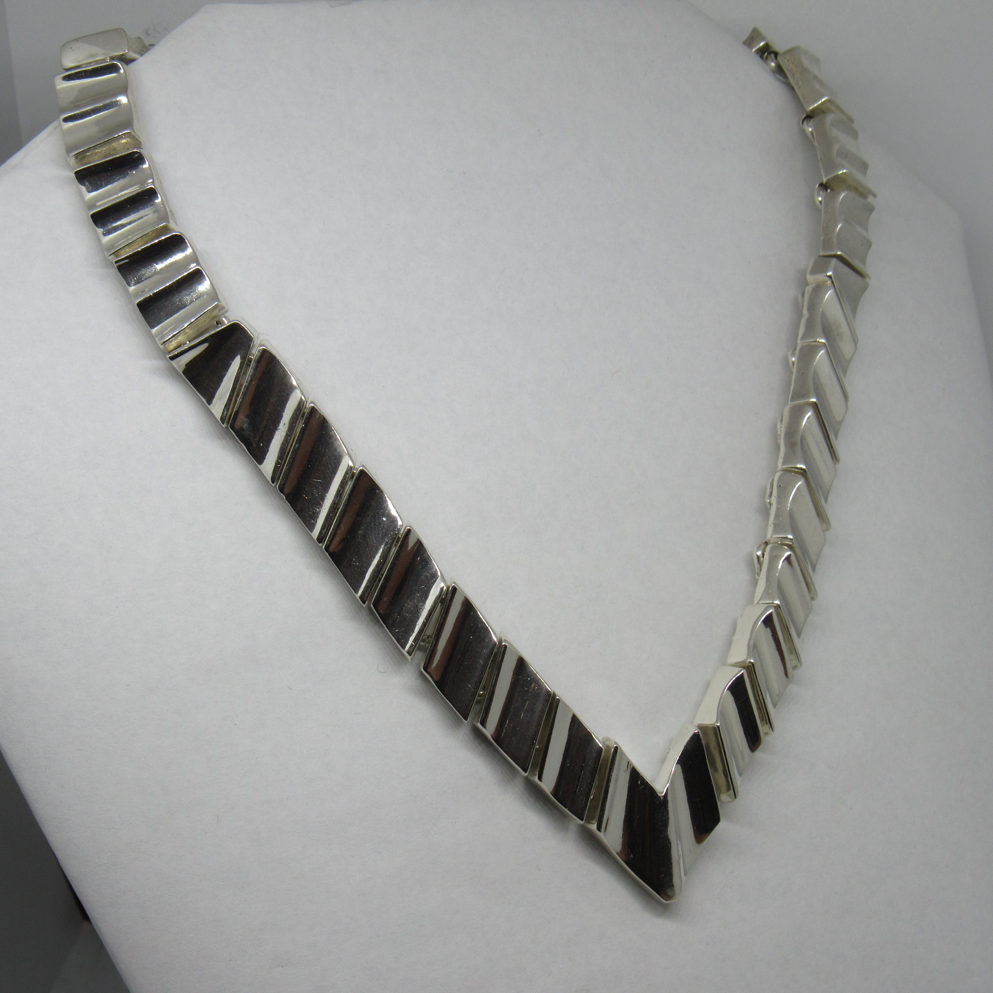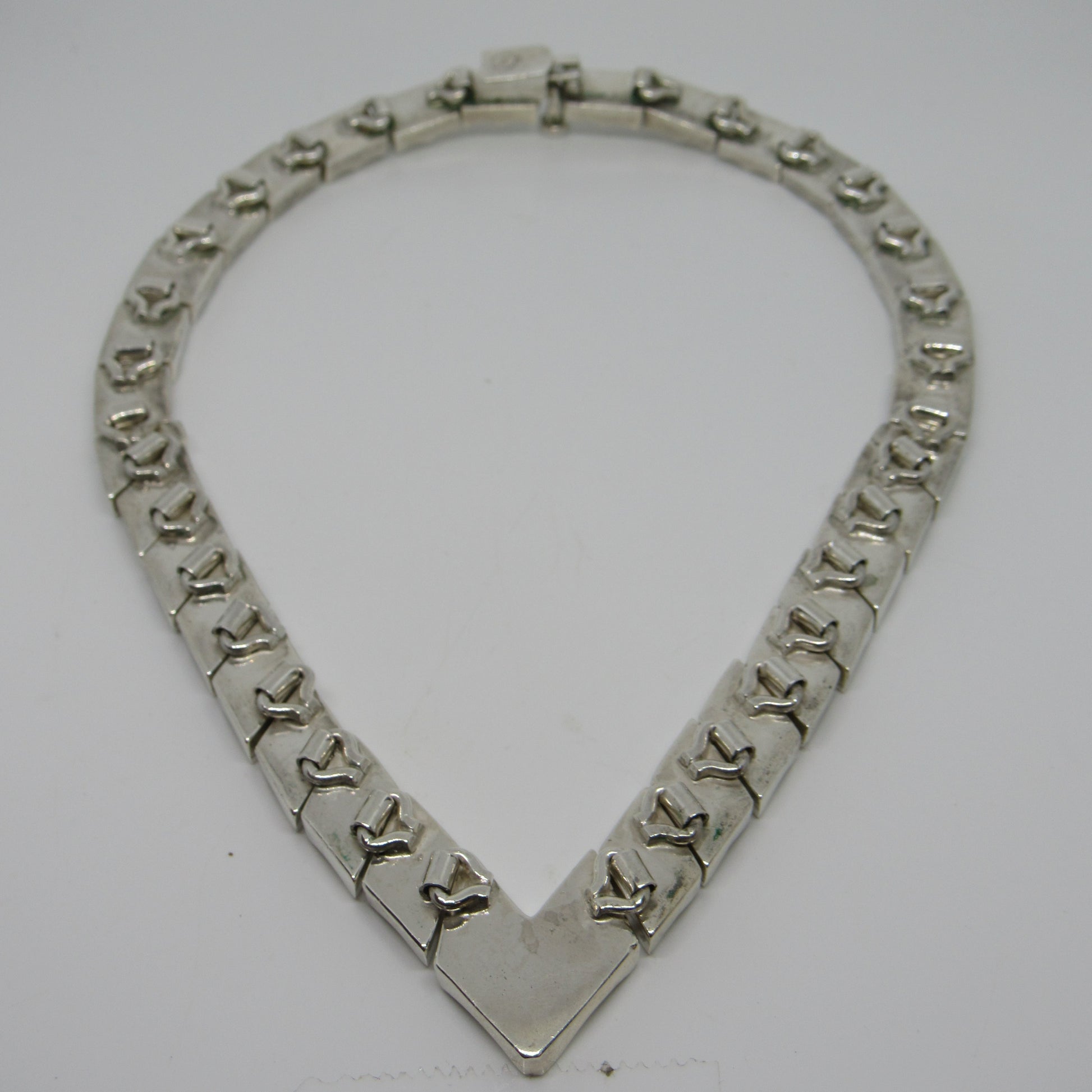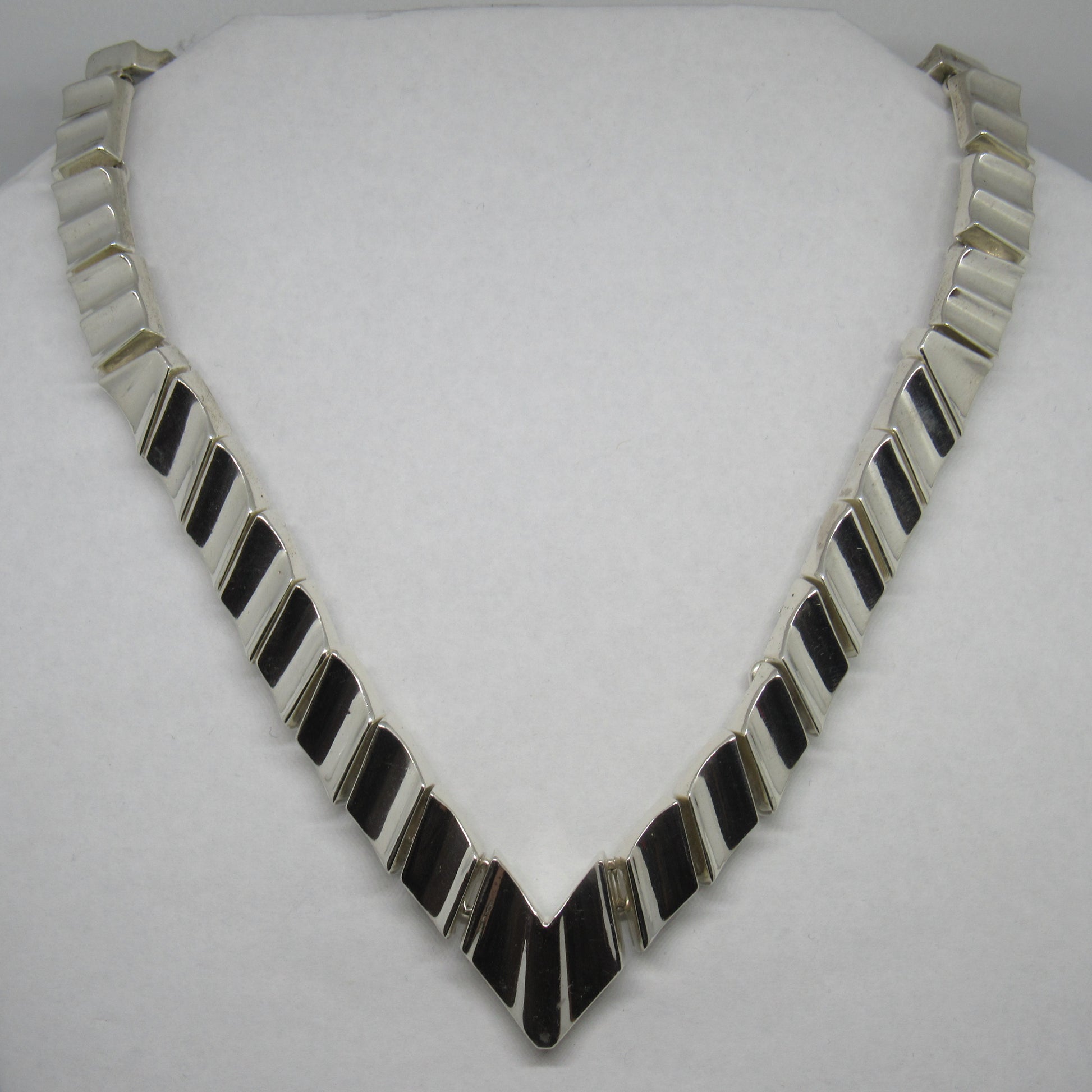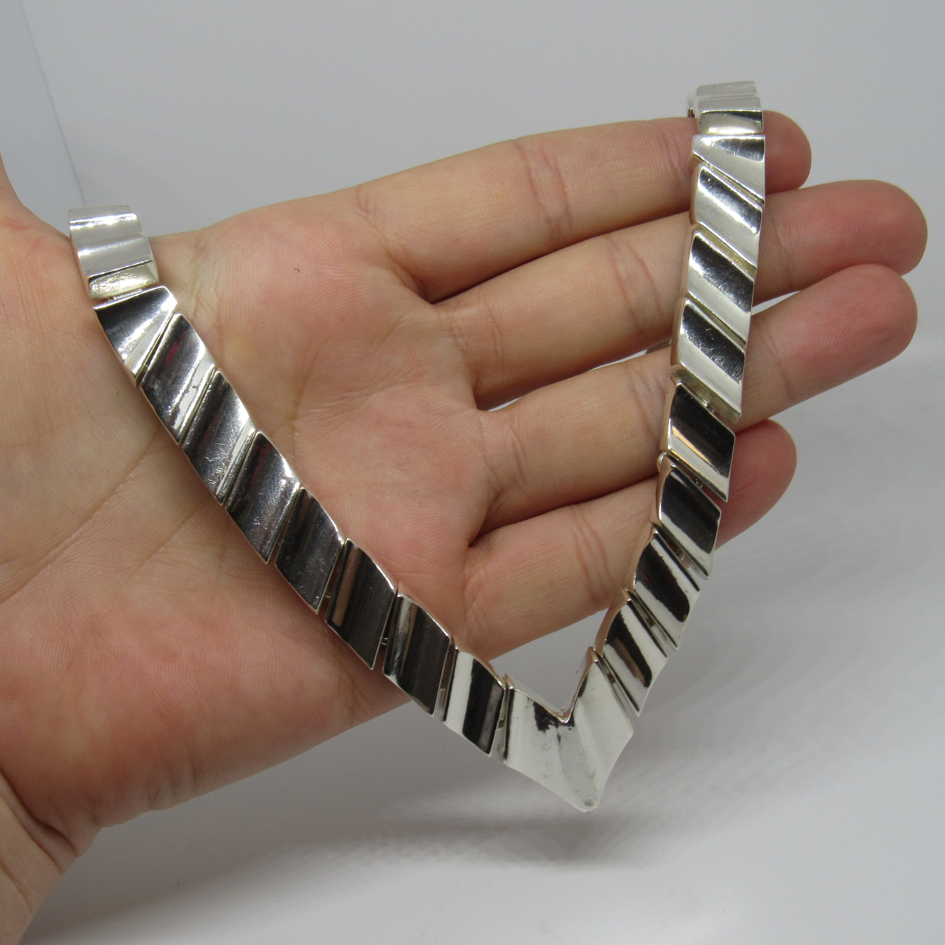 Vintage Mexico Sterling Silver 925 Pointed Hinge Link Collar Heavy Necklace - ~16 in, ~185 gr