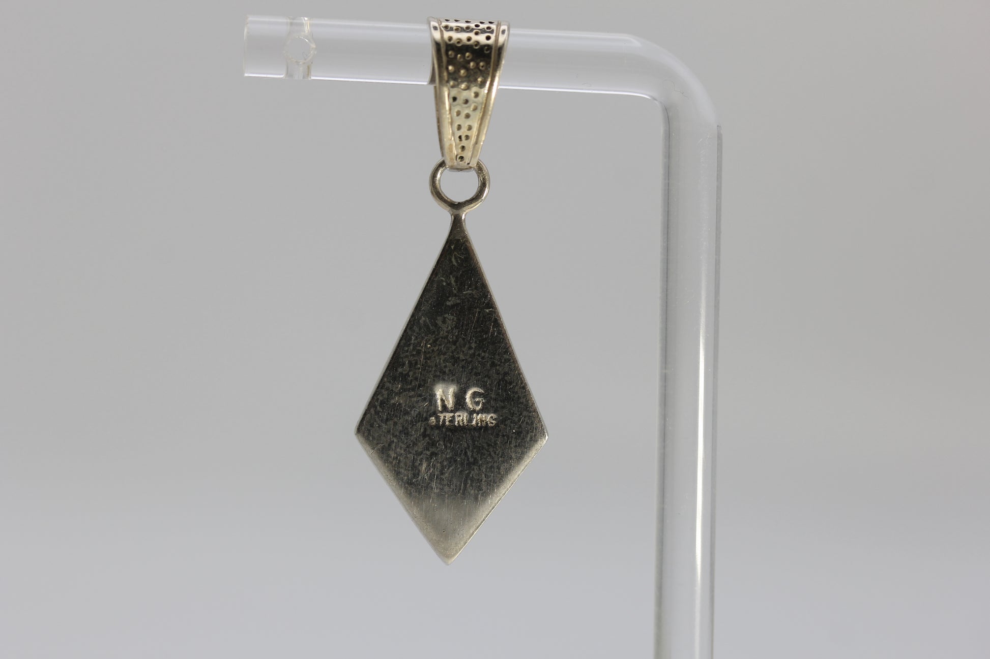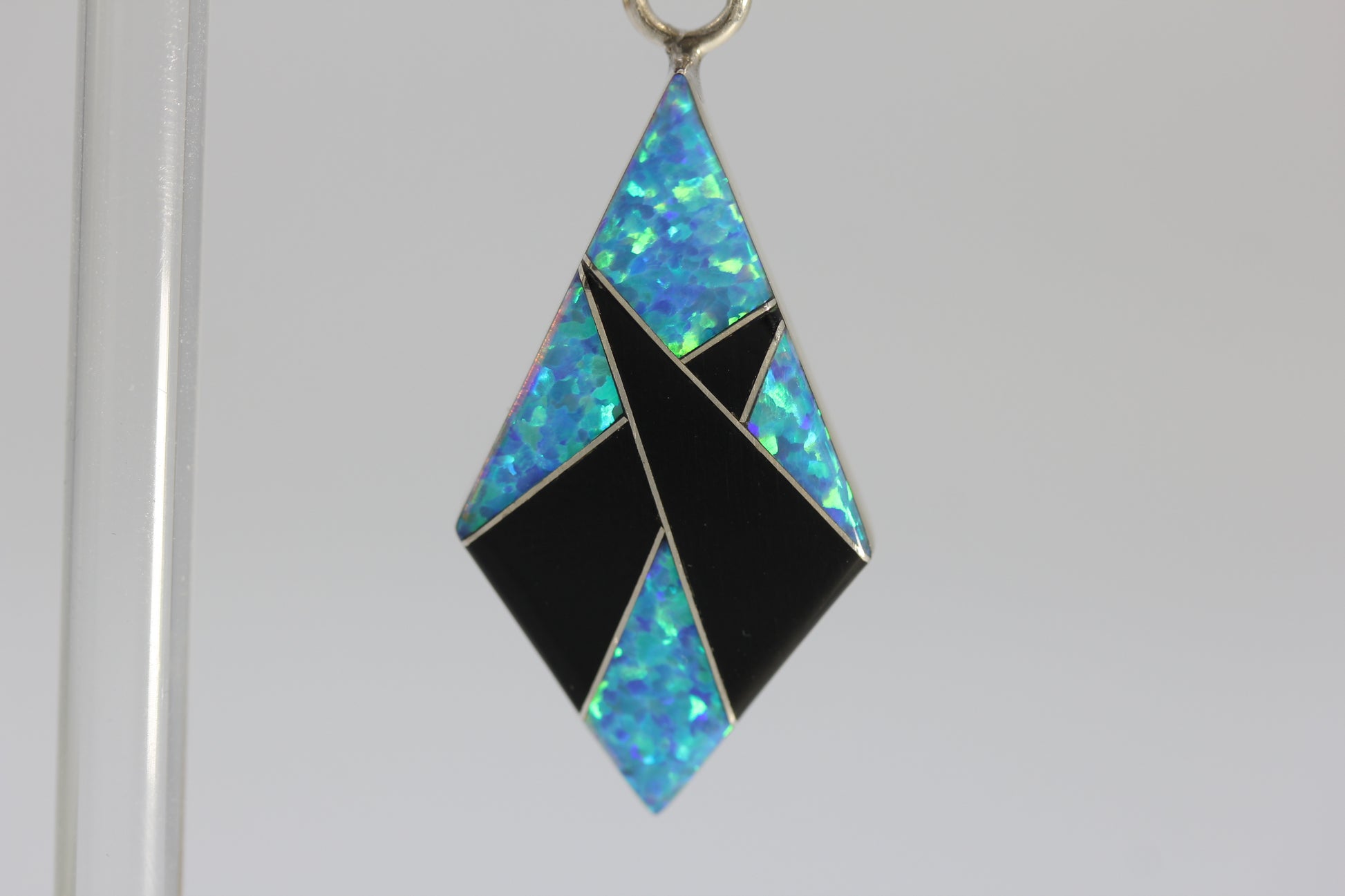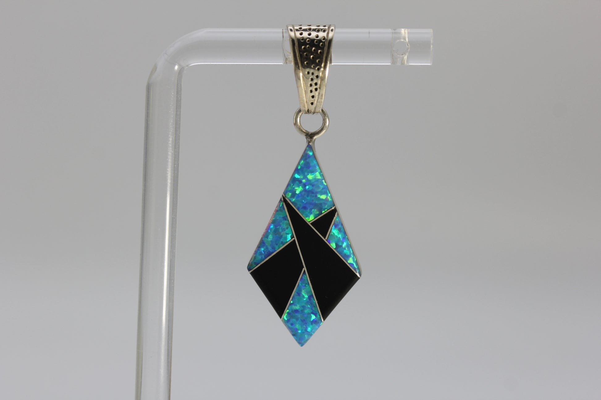 Vintage Nelson Garcia NG Kewa Sterling Turquoise Blue Opal & Onyx Pendant - 1.75 inch