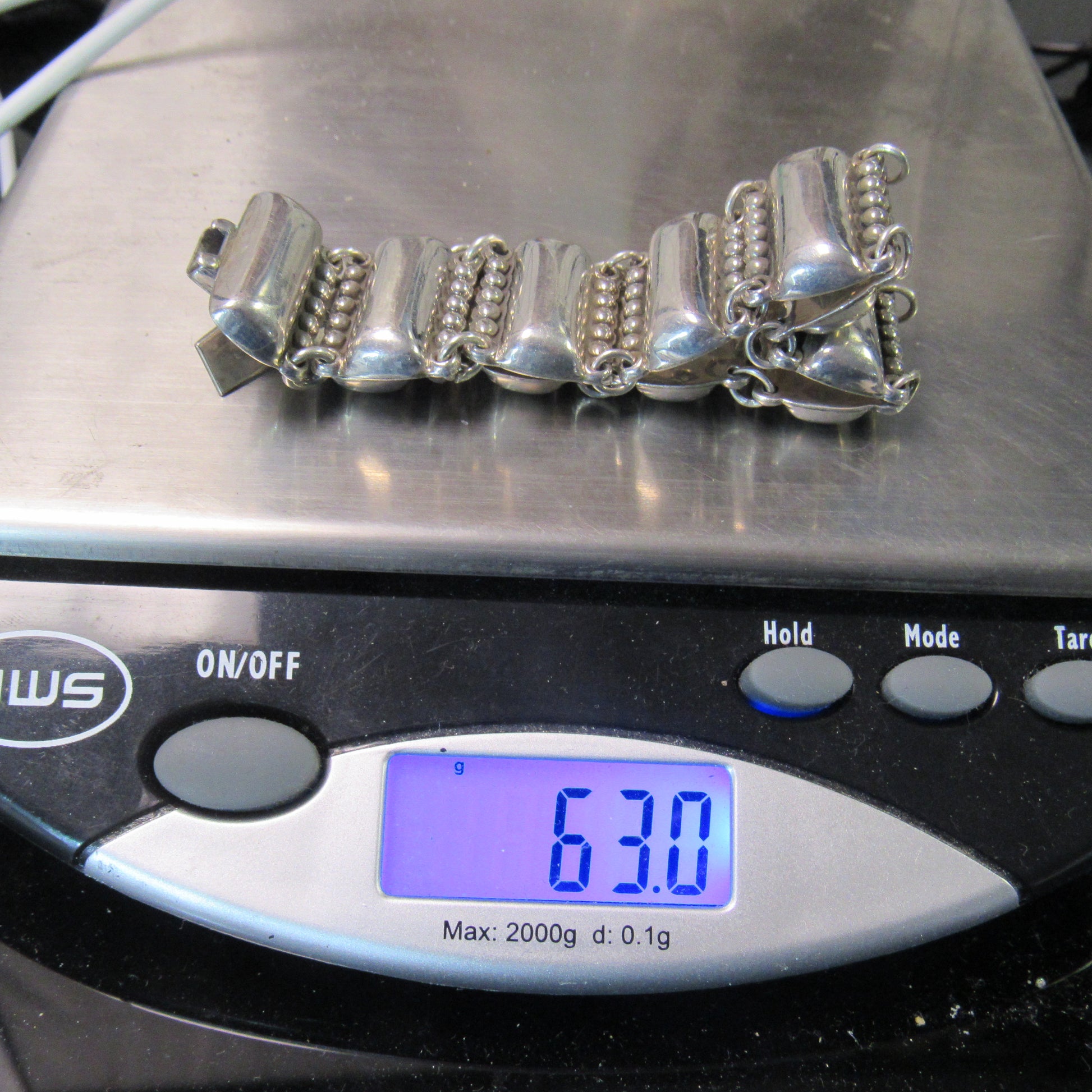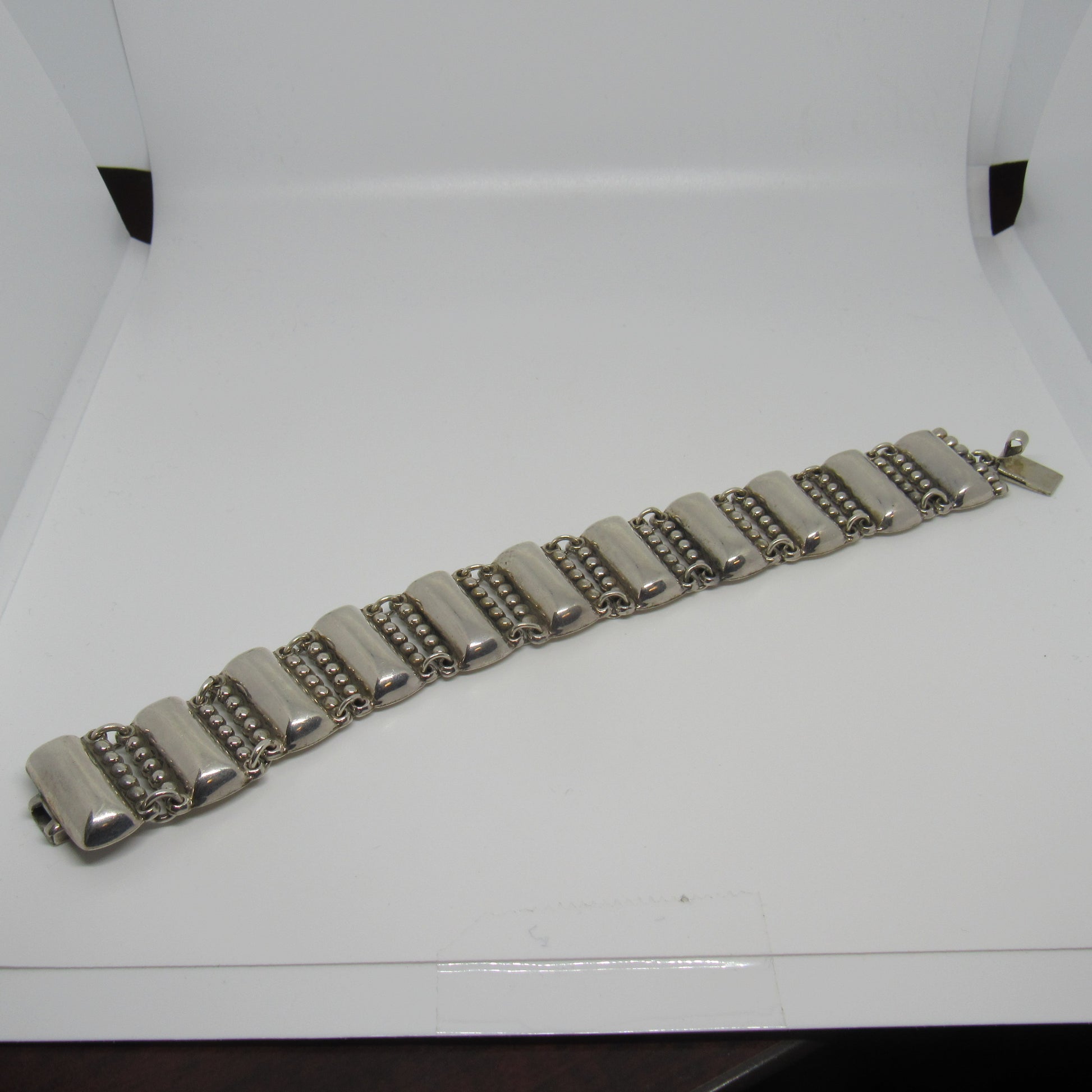 Vintage Sterling Silver 925 Mexico C-11 Rectangle Beaded Links - 8 inch