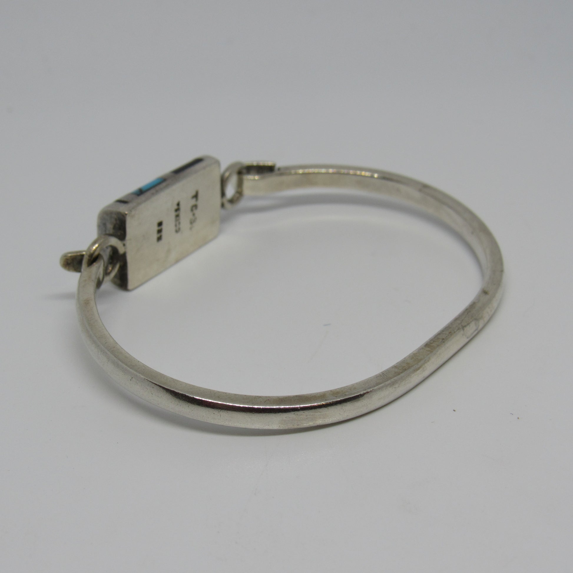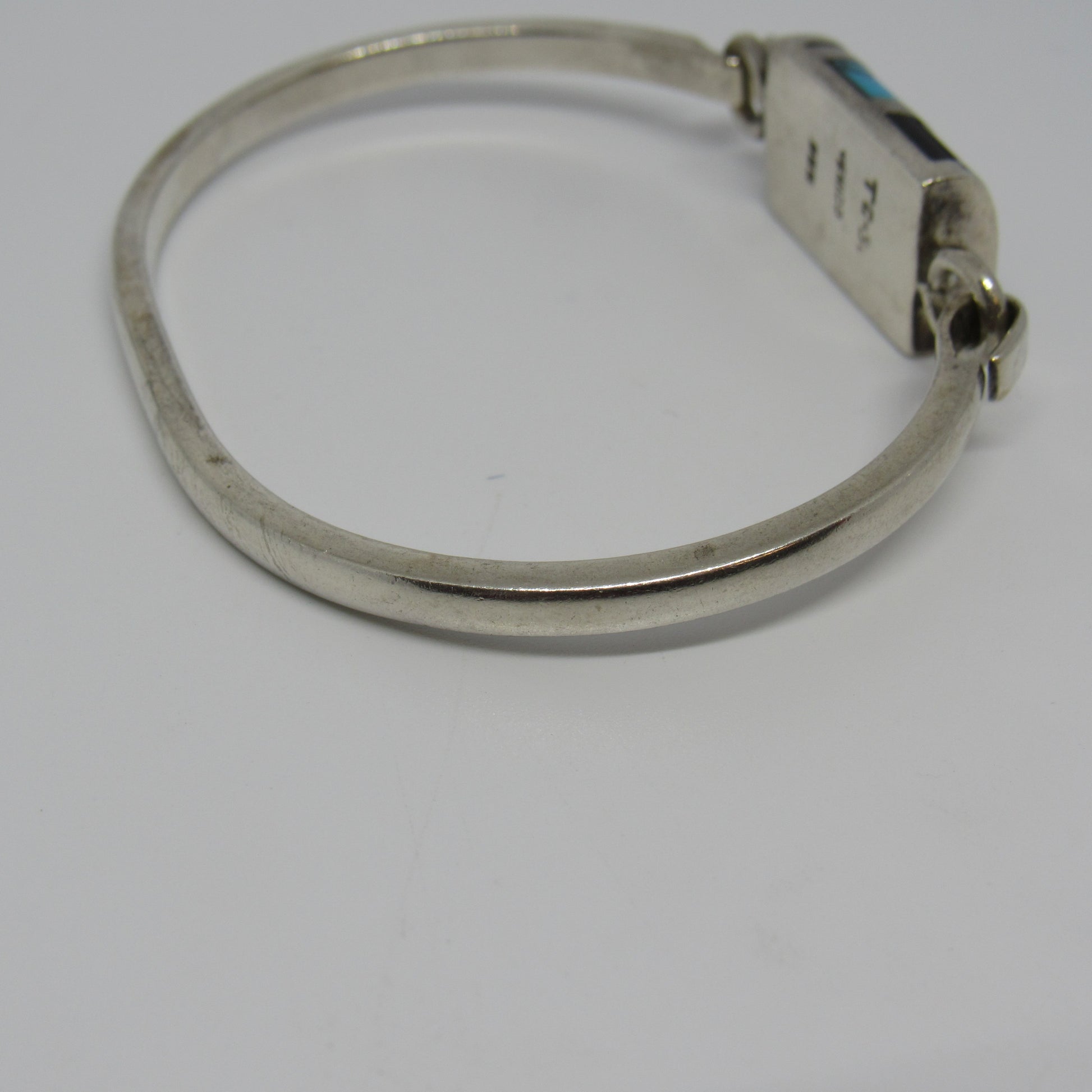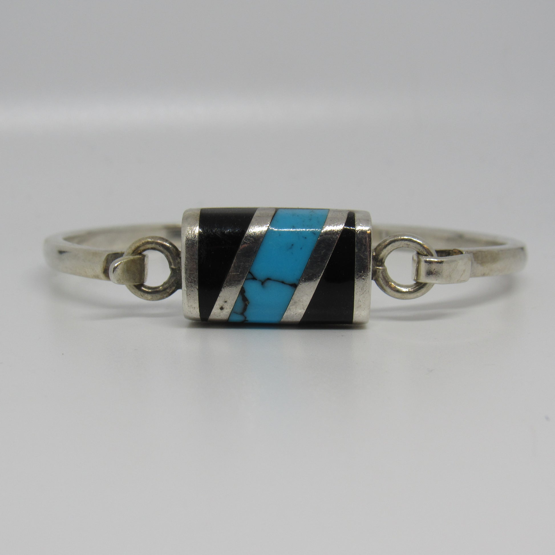 Vintage Sterling Silver 925 Mexico TC-30 Turquoise Onyx Bangle Bracelet - 7 inch