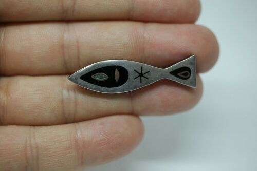 Vtg Mexico 925 Sterling Silver Copper Inlay Lucite Modernist Fish Brooch Pin