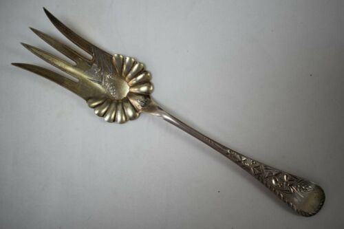Wood & Hughes Engraved #1 Sterling Silver Salad Serving Fork Gold Wash - No Mono